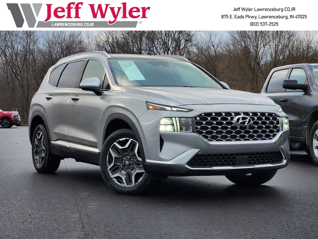 Jeff Wyler Chrysler Dodge Jeep of Lawrenceburg is delighted to offer this beautiful 2023 Hyundai Santa Fe Hybrid SEL Premium in Shimmering Silver. Option Group 01, I4, 12 Speakers, 3.510 Axle Ratio, 4-Wheel Disc Brakes, ABS brakes, Air Conditioning, Alloy wheels, AM/FM radio: SiriusXM, Apple CarPlay & Android Auto, Auto High-beam Headlights, Auto-dimming Rear-View mirror, Automatic temperature control, Brake assist, Bumpers: body-color, Cargo Cover/Screen, Delay-off headlights, Driver door bin, Driver vanity mirror, Dual front impact airbags, Dual front side impact airbags, Electronic Stability Control, Emergency communication system, Exterior Parking Camera Rear, Four wheel independent suspension, Front anti-roll bar, Front Bucket Seats, Front Center Armrest, Front dual zone A/C, Front reading lights, Fully automatic headlights, Garage door transmitter: HomeLink, H-Tex Leatherette Seat Trim, harman/kardon® Speakers, Heated door mirrors, Heated Front Bucket Seats, Heated front seats, Illuminated entry, Leather steering wheel, Low tire pressure warning, Navigation System, Occupant sensing airbag, Outside temperature display, Overhead airbag, Overhead console, Panic alarm, Passenger door bin, Passenger vanity mirror, Power door mirrors, Power driver seat, Power Liftgate, Power moonroof, Power passenger seat, Power steering, Power windows, Radio: AM/FM Harman Kardon Audio, Rear anti-roll bar, Rear seat center armrest, Rear window defroster, Rear window wiper, Remote keyless entry, Security system, Speed control, Speed-sensing steering, Split folding rear seat, Spoiler, Steering wheel mounted audio controls, Tachometer, Telescoping steering wheel, Tilt steering wheel, Traction control, Trip computer, Turn signal indicator mirrors, Variably intermittent wipers, and Wheels: 19" x 7.5J Alloy Our PRE-OWNED vehicles are put through a rigorous 167- POINT QUALITY ASSURANCE INSPECTION along with an average amount of over $1,400.00 SPENT to recondition each vehicle so we can be sure to deliver you the highest quality vehicle like you deserve! ***ONLINE PRICE DOES NOT INCLUDE WYLER FAMILY FIRST PACKAGE*** Stop by 4136 Shelbyville Road to see for yourself, or give us a call @ 502-897-3151 to schedule your test drive! Ask about available certifications.