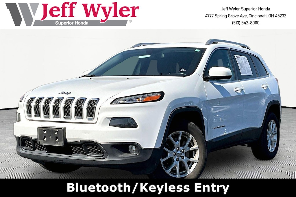 Jeff Wyler Superior Honda is honored to offer this fantastic-looking 2017 Jeep Cherokee Latitude in Bright White Clearcoat. BLUETOOTH, LEATHER, CLEAN CARFAX...NO ACCIDENTS, and ONE OWNER Cold Weather Group (All-Season Floor Mats, Engine Block Heater, Exterior Mirrors w/Heating Element, Heated Front Seats, Heated Steering Wheel, Power Heated Mirrors, and Windshield Wiper De-Icer), Quick Order Package 26J, True North Edition (DISC) (North Badge and Vinyl Door Trim Panel), Cherokee Latitude, 4D Sport Utility, 3.2L V6, 9-Speed 948TE Automatic, 4WD, Bright White Clearcoat, Black Leather, 17" x 7" Aluminum Wheels, 3.73 Axle Ratio, 4-Wheel Disc Brakes, 6 Speakers, 600 Amp Maintenance Free Battery, ABS brakes, Active Grille Shutters, Air Conditioning, Alloy wheels, AM/FM radio, Anti-whiplash front head restraints, Auxiliary Transmission Oil Cooler, Bi-Xenon HID Headlamps (DISC), Brake assist, Bumpers: body-color, Compass, Delay-off headlights, Driver door bin, Driver vanity mirror, Dual front impact airbags, Dual front side impact airbags, Electronic Stability Control, Engine Oil Cooler, Four wheel independent suspension, Front anti-roll bar, Front Bucket Seats, Front Center Armrest, Front fog lights, Front reading lights, Fully automatic headlights, High intensity discharge headlights: Bi-Xenon, Illuminated entry, Integrated Voice Command w/Bluetooth, Knee airbag, Low tire pressure warning, Normal Duty Suspension, Occupant sensing airbag, Outside temperature display, Overhead airbag, Overhead console, Panic alarm, ParkView Rear Back-Up Camera, Passenger door bin, Passenger vanity mirror, Power 8-Way Driver Seat, Power door mirrors, Power steering, Power windows, Premium Cloth Bucket Seats, Radio data system, Radio: Uconnect 3 w/5" Display, Rear anti-roll bar, Rear reading lights, Rear seat center armrest, Rear side impact airbag, Rear window defroster, Rear window wiper, Remote keyless entry, Roof rack: rails only, Speed control, Speed-sensing steering, Split folding rear seat, Spoiler, Steering wheel mounted audio controls, Tachometer, Telescoping steering wheel, Tilt steering wheel, Traction control, Trip computer, Variably intermittent wipers, and Voltmeter Our PRE-OWNED vehicles are put through a rigorous 167- POINT QUALITY ASSURANCE INSPECTION along with an average amount of over $1,400.00 SPENT to recondition each vehicle so we can be sure to deliver you the highest quality vehicle like you deserve! ***ONLINE PRICE DOES NOT INCLUDE WYLER FAMILY FIRST PACKAGE*** Stop by 4777 Spring Grove Ave. Road to see for yourself, or give us a call @ 283-209-1858 to schedule your test drive!Vehicle pricing includes all offers and incentives. Due to limited inventory, offers and pricing are all subject to change. Tax, Title, Tags and $387 doc fees are not included in vehicle price shown and must be paid by the purchaser. Doc fees vary by location. Financing w/approved credit. Mileage est. Based on current EPA estimates reflecting new EPA methods beginning w/ 2008 models. For comparison only. Do not compare to pre 2008 models. Actual mileage may vary based on how you drive and maintain your vehicle. Information on this site includes 3rd party data believed to be reliable, subject to change without notice. Jeff Wyler reserves the right to correct any errors and/or omissions in the compilation or presentation of this data and makes no representations express or implied to any prospective purchaser as to the vehicle's condition, specifications, history, equipment or equipment function, price or warranties. This vehicle may be subject to an open recall that has not been repaired. Please consult safercar.gov for more information on the current status. It is the responsibility of purchaser to confirm any data prior to purchase. Other than MSRP, all offers only apply to this vehicle and are subject to change. Vehicle prices are subject to change and all vehicles are subject to prior sale and may not be available when you are ready to purchase. Pric
