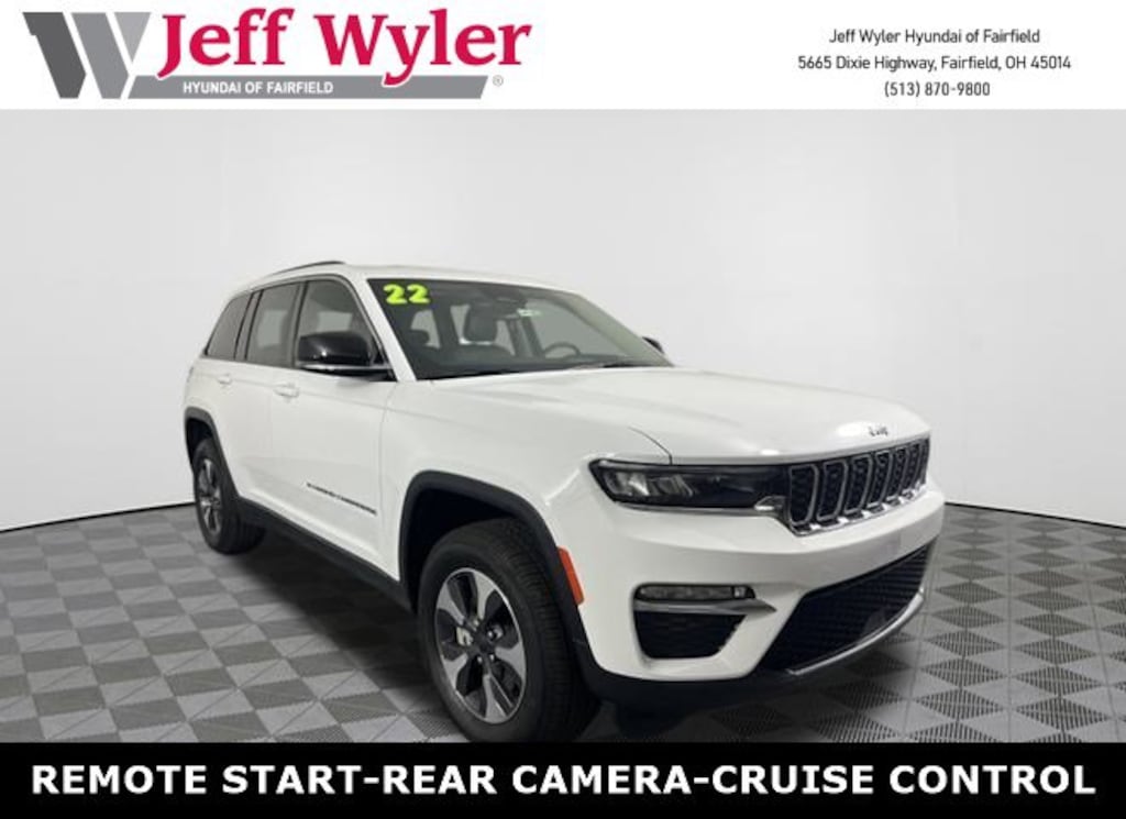CARFAX One-Owner. Jeff Wyler Hyundai of Fairfield is delighted to offer this fantastic-looking 2022 Jeep Grand Cherokee 4xe in Bright White Clearcoat. Well equipped with: Quick Order Package 27F, 2.0L I4 DOHC, 4WD, Android Auto, Apple CarPlay, CALL NOW FOR YOUR VIP APPOINTMENT 513-870-9800, FULLY SERVICED w/RECORDS, GUARANTEED FINANCING!! NO MATTER YOUR SITUATION WE CAN GET AN APPROVAL!!, THE #1 Volume dealer in the region! Come see why for yourself Today!!, WE PAY MORE FOR YOUR TRADE!!, 10 Speakers, 10.1" Touchscreen Display, 3.70 Rear Axle Ratio, 4-Wheel Disc Brakes, 4G LTE Wi-Fi Hot Spot, ABS brakes, Air Conditioning, All Radio Equipped Vehicles, Alloy wheels, AM/FM radio: SiriusXM with 360L, Anti-whiplash front head restraints, Apple CarPlay, Audio memory, Auto High-beam Headlights, Automatic temperature control, Brake assist, Bumpers: body-color, Capri Leather Seats, Compass, Connected Travel & Traffic Services, Connectivity - US/Canada, Delay-off headlights, Disassociated Touchscreen Display, Driver door bin, Driver vanity mirror, Dual front impact airbags, Dual front side impact airbags, Dual-Pane Panoramic Sunroof (DISC), Electronic Stability Control, For Details, Visit DriveUconnect.com, For More Info, Call 800-643-2112, Four wheel independent suspension, Front anti-roll bar, Front Bucket Seats, Front Center Armrest w/Storage, Front dual zone A/C, Front fog lights, Front Passenger Interactive Display, Front reading lights, Fully automatic headlights, Garage door transmitter, Global Telematics Box Module (TBM), Google Android Auto, GPS Antenna Input, GPS Navigation, HD Radio, Heated door mirrors, Heated front seats, Heated rear seats, Heated steering wheel, Heavy Duty Suspension, Illuminated entry, Integrated Center Stack Radio, Integrated Voice Command w/Bluetooth, Knee airbag, Leather steering wheel, Low tire pressure warning, Memory seat, Occupant sensing airbag, Outside temperature display, Overhead airbag, Overhead console, Panic alarm, ParkView Rear Back-Up Camera, Passenger door bin, Passenger vanity mirror, Power door mirrors, Power driver seat, Power Liftgate, Power passenger seat, Power steering, Power windows, Pur Wrapped Instrument Panel, Radio data system, Radio: Uconnect 5 Nav w/10.1" Display, Radio: Uconnect 5 w/8.4" Display, Rear anti-roll bar, Rear reading lights, Rear window defroster, Rear window wiper, Remote keyless entry, Roof rack: rails only, Security system, SiriusXM Radio Service, SiriusXM Satellite Radio, SiriusXM w/360L, Speed control, Speed-Sensitive Wipers, Split folding rear seat, Spoiler, Steering wheel mounted audio controls, Tachometer, Telescoping steering wheel, Tilt steering wheel, Traction control, Trip computer, Turn signal indicator mirrors, USB Host Flip, Variably intermittent wipers, Voltmeter, and Wheels: 18" x 8" Fully Painted AluminuM. TO CHECK ON THE AVAILABILITY OF THIS VEHICLE REACH OUT TO ONE OF OUR TEAM MEMBERS!! ALSO SHOP ONLINE AT https://www.jeffwylerhyundaioffairfield.com/ Proudly Serving: Cincinnati, Dayton, Columbus, Louisville, Lexington, Indianapolis, Hamilton, Florence, Alexandria, Beavercreek, Springdale, West Chester, Monroe, Fairfield, Kenwood, Newport and all of greater Cincinnati Ohio, Indiana, and Northern Kentucky. New Price!
