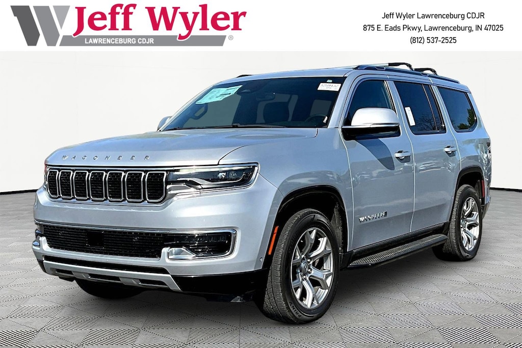 Jeff Wyler Chrysler Dodge Jeep of Lawrenceburg is proud to offer this beautiful 2022 Jeep Wagoneer Series II in Silver Zynith. Quick Order Package 22J, 10 Speakers, 3.21 Rear Axle Ratio, 3rd row seats: bench, 4-Wheel Disc Brakes, ABS brakes, Adjustable pedals, Air Conditioning, Alloy wheels, AM/FM radio: SiriusXM with 360L, Anti-whiplash front head restraints, Audio memory, Auto-dimming door mirrors, Auto-dimming Rear-View mirror, Auto-leveling suspension, Automatic temperature control, Brake assist, Bumpers: body-color, Compass, Delay-off headlights, Driver door bin, Driver vanity mirror, Driver's Seat Mounted Armrest, Dual front impact airbags, Dual front side impact airbags, Electronic Stability Control, Exterior Parking Camera Rear, Four wheel independent suspension, Front anti-roll bar, Front Bucket Seats, Front Center Armrest w/Storage, Front dual zone A/C, Front fog lights, Front reading lights, Fully automatic headlights, Garage door transmitter, Genuine wood console insert, Genuine wood dashboard insert, Genuine wood door panel insert, Heated door mirrors, Heated front seats, Heated steering wheel, Illuminated entry, Knee airbag, Leather Trimmed Bucket Seats, Low tire pressure warning, Memory seat, Navigation System, Normal Duty Suspension, Occupant sensing airbag, Outside temperature display, Overhead airbag, Overhead console, Panic alarm, Passenger door bin, Passenger seat mounted armrest, Passenger vanity mirror, Pedal memory, Power adjustable front head restraints, Power door mirrors, Power driver seat, Power Liftgate, Power passenger seat, Power steering, Power windows, Radio data system, Radio: Uconnect 5 Nav w/10.1" Display, Rain sensing wipers, Rear air conditioning, Rear anti-roll bar, Rear dual zone A/C, Rear reading lights, Rear seat center armrest, Rear window defroster, Rear window wiper, Reclining 3rd row seat, Remote keyless entry, Security system, Speed control, Speed-sensing steering, Speed-Sensitive Wipers, Split folding rear seat, Steering wheel memory, Steering wheel mounted audio controls, Tachometer, Telescoping steering wheel, Tilt steering wheel, Traction control, Trip computer, Turn signal indicator mirrors, Variably intermittent wipers, Ventilated front seats, Voltmeter, and Wheels: 20" x 9.0" Aluminum Base Finish Our PRE-OWNED vehicles are put through a rigorous 167- POINT QUALITY ASSURANCE INSPECTION along with an average amount of over $1,400.00 SPENT to recondition each vehicle so we can be sure to deliver you the highest quality vehicle like you deserve! ***ONLINE PRICE DOES NOT INCLUDE WYLER FAMILY FIRST PACKAGE*** Stop by 4136 Shelbyville Road to see for yourself, or give us a call @ 502-897-3151 to schedule your test drive! Ask about available certifications.