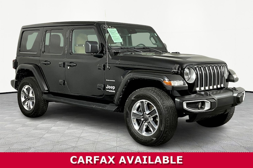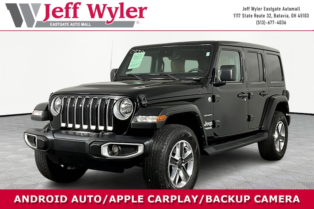 Jeff Wyler Eastgate Auto Mall is honored to offer this attractive-looking 2022 Jeep Wrangler Unlimited Sahara in Black Clearcoat. Well equipped with: Advanced Safety Group (Advanced Brake Assist, Auto High Beam Headlamp Control, and Full Speed Forward Collision Warning Plus), Cold Weather Group (Heated Front Seats and Heated Steering Wheel), Quick Order Package 25G, Safety Group (Blind Spot & Cross Path Detection and ParkSense Rear Park Assist System), 110 MPH Vehicle Max Speed Calibration, 3.45 Rear Axle Ratio, 4-Wheel Disc Brakes, 9 Speakers, ABS brakes, Air Conditioning, Alloy wheels, AM/FM radio: SiriusXM, Apple CarPlay/Android Auto, Auto-dimming Rear-View mirror, Automatic temperature control, Aux Battery, Brake assist, Cloth Low-Back Bucket Seats, Compass, Delay-off headlights, Driver door bin, Driver vanity mirror, Dual front impact airbags, Dual front side impact airbags, Electronic Stability Control, Emergency communication system: SiriusXM Guardian, Engine Oil Cooler, Front anti-roll bar, Front Bucket Seats, Front Center Armrest w/Storage, Front dual zone A/C, Front fog lights, Front License Plate Bracket, Front reading lights, Fully automatic headlights, Garage door transmitter, Heated door mirrors, Heavy Duty Suspension w/Gas Shocks, Illuminated entry, Integrated roll-over protection, Leather steering wheel, Low tire pressure warning, MOPAR Stainless Door Sill Guards, Navigation System, Non-Lock Fuel Cap w/o Discriminator, Occupant sensing airbag, Outside temperature display, Panic alarm, ParkView Rear Back-Up Camera, Passenger door bin, Passenger vanity mirror, Power door mirrors, Power steering, Power Top Quarter Window Storage Bag, Power windows, Radio data system, Radio: Uconnect 4C Nav w/8.4" Display, Rear anti-roll bar, Rear reading lights, Remote keyless entry, Remote Start System, Removable Rear Quarter Windows, Security system, Sky 1-Touch Power Top, Speed control, Split folding rear seat, Steering wheel mounted audio controls, Stop-Start Dual Battery System, Tachometer, Telescoping steering wheel, Tilt steering wheel, Traction control, Trip computer, Variably intermittent wipers, Voltmeter, and Wheels: 18" x 7.5" Polished w/Gray Spokes. CARFAX One-Owner. Ask about available certifications. Used vehicles 10 years of age or newer with less than 100,000 miles are eligible for the Wyler Assurance Program, but eligible vehicles must pass our reconditioning process and multi-point inspection. Provided the vehicle passes inspection, vehicles will be eligible for the 6 month/6,000 mile limited warranty. The 6 month/6,000 mile limited warranty is NOT available on AS-IS vehicles, wholesale vehicles, lease buyback/pass-thru vehicles or un-inspected vehicles. Note that this program can also apply to vehicles where the remaining factory coverage is less than 6 months or 6,000 miles. Please check the Federal Trade Commission (FTC) Buyers guide on the vehicle for full details as to whether or not warranty coverage may apply. Contact Dealer for additional details. The Wyler Assurance 6 month/6,000 Mile limited warranty ends 6 months from the date of the Retail Purchase Agreement (BUYERS ORDER) or when the vehicle's odometer registers 6,000 additional miles to the mileage listed on the BUYERS ORDER, whichever comes first. Your Deductible - The warranty holder on your contract pays the first $100 of each covered repair.