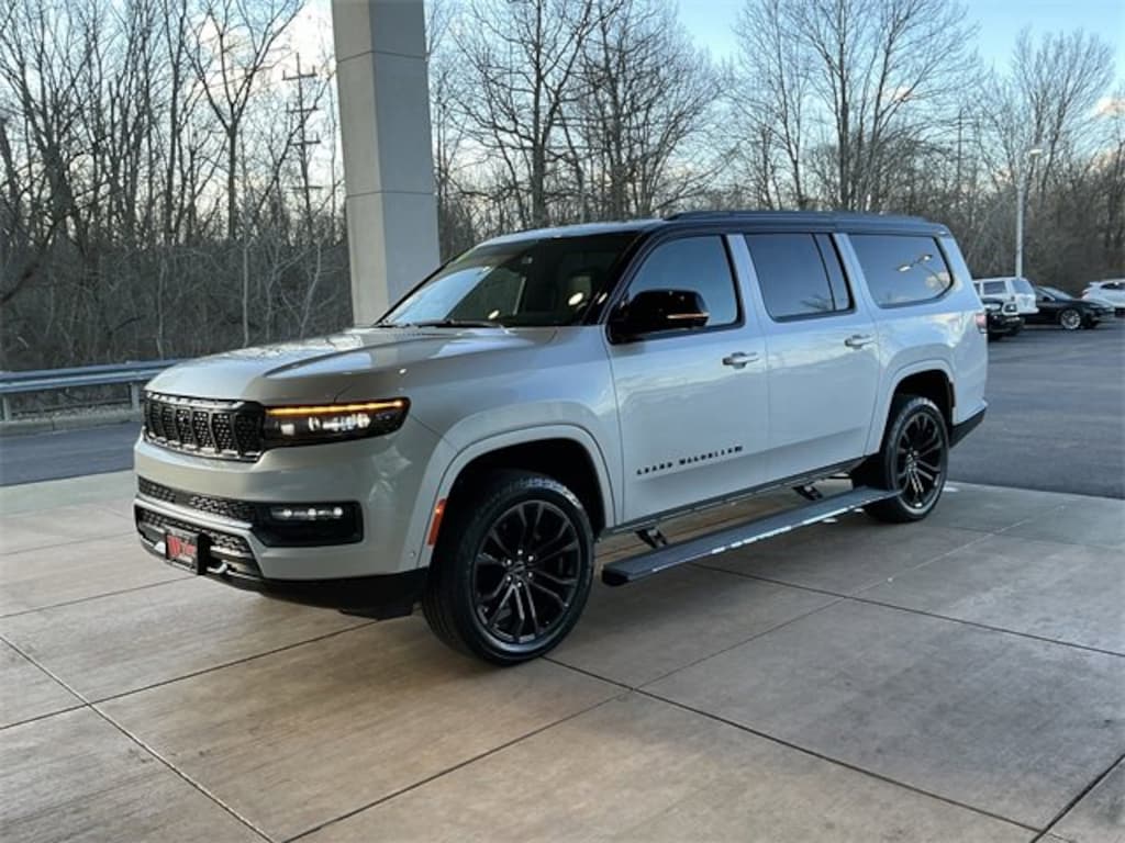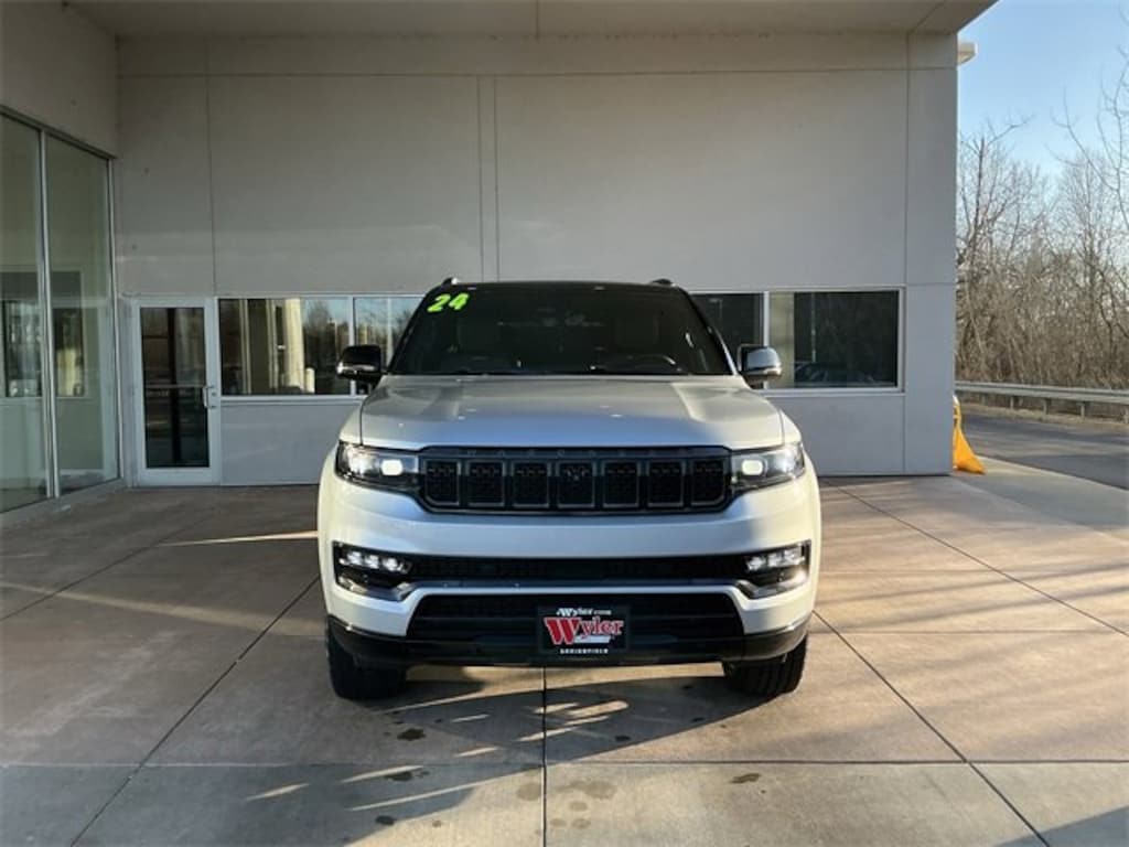 Jeff Wyler Springfield Auto Mall is delighted to offer this beautiful-looking 2024 Jeep Grand Wagoneer L Series II in Silver Zynith. Well equipped with: Obsidian Appearance Package, Quick Order Package 28T Obsidian (23 Speaker McIntosh Reference Audio System, Adjustable Roof Rail Crossbars, Black Interior Accents, Black Roof, Front Console Cooler, Front Passenger Interactive Display, Gloss Black Upper & Lower DLO Molding, Piano Black Exterior Accents, Rearview Autodim Digital Display Mirror, Ventilated Rear Seats, and Wheels: 22 x 9.0 Tinted Polished w/Black Insert), Two Tone Paint Group, 19 Speakers, 3.92 Rear Axle Ratio, 3rd row seats: bench, 4-Wheel Disc Brakes, ABS brakes, Adjustable pedals, Air Conditioning, Alloy wheels, AM/FM radio: SiriusXM with 360L, Anti-whiplash front head restraints, Apple CarPlay/Android Auto, Audio memory, Auto High-beam Headlights, Auto-dimming door mirrors, Auto-dimming Rear-View mirror, Auto-leveling suspension, Automatic temperature control, Brake assist, Bumpers: body-color, Compass, Delay-off headlights, Driver door bin, Driver vanity mirror, Driver's Seat Mounted Armrest, Dual front impact airbags, Dual front side impact airbags, Electronic Stability Control, Emergency communication system, Four wheel independent suspension, Front anti-roll bar, Front Bucket Seats, Front Center Armrest w/Storage, Front dual zone A/C, Front fog lights, Front reading lights, Fully automatic headlights, Garage door transmitter, Genuine wood console insert, Genuine wood dashboard insert, Genuine wood door panel insert, Heads-Up Display, Heated door mirrors, Heated front seats, Heated rear seats, Heated steering wheel, Illuminated entry, Knee airbag, Leather steering wheel, Leather Trimmed Bucket Seats, Low tire pressure warning, Memory seat, Navigation System, Normal Duty Suspension, Occupant sensing airbag, Outside temperature display, Overhead airbag, Overhead console, Panic alarm, Passenger door bin, Passenger seat mounted armrest, Passenger vanity mirror, Pedal memory, Power adjustable front head restraints, Power door mirrors, Power driver seat, Power Liftgate, Power moonroof, Power passenger seat, Power steering, Power windows, Radio data system, Radio: Uconnect 5 Nav w/12.0 Display, Rain sensing wipers, Rear air conditioning, Rear anti-roll bar, Rear dual zone A/C, Rear reading lights, Rear seat center armrest, Rear window defroster, Rear window wiper, Reclining 3rd row seat, Remote keyless entry, Security system, Speed control, Speed-sensing steering, Speed-Sensitive Wipers, Split folding rear seat, Steering wheel memory, Steering wheel mounted audio controls, Tachometer, Telescoping steering wheel, Tilt steering wheel, Traction control, Trip computer, Turn signal indicator mirrors, Variably intermittent wipers, Ventilated front seats, and Voltmeter. Ask about available certifications. Used vehicles 10 years of age or newer with less than 100,000 miles are eligible for the Wyler Assurance Program, but eligible vehicles must pass our reconditioning process and multi-point inspection. Provided the vehicle passes inspection, vehicles will be eligible for the 6 month/6,000 mile limited warranty. The 6 month/6,000 mile limited warranty is NOT available on AS-IS vehicles, wholesale vehicles, lease buyback/pass-thru vehicles or un-inspected vehicles. Note that this program can also apply to vehicles where the remaining factory coverage is less than 6 months or 6,000 miles. Please check the Federal Trade Commission (FTC) Buyers guide on the vehicle for full details as to whether or not warranty coverage may apply. Contact Dealer for additional details. The Wyler Assurance 6 month/6,000 Mile limited warranty ends 6 months from the date of the Retail Purchase Agreement (BUYERS ORDER) or when the vehicle's odometer registers 6,000 additional miles to the mileage listed on the BUYERS ORDER, whichever comes first. Your Deductible - The warranty holder on your contract pays the first $100 of each covered repair.