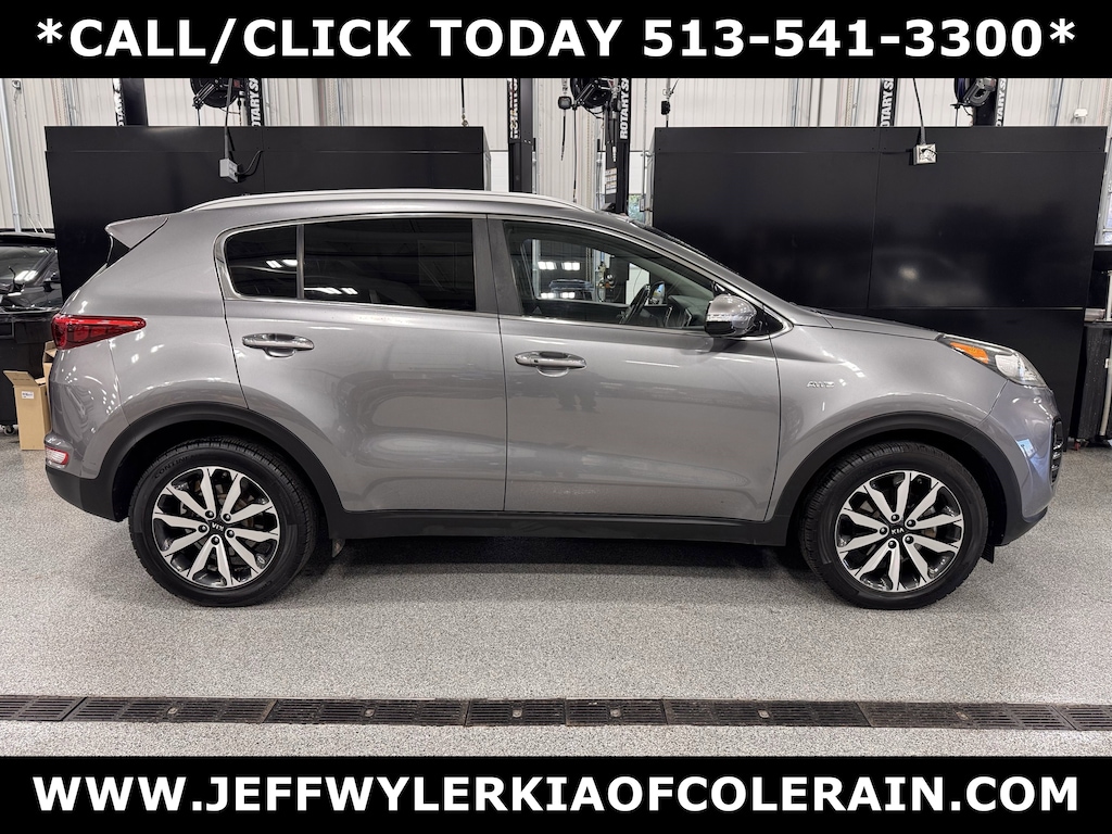 Jeff Wyler Kia of Colerain is delighted to offer this outstanding-looking 2017 Kia Sportage EX in Mineral Silver. EX Premium Package (Auto-Dimming Rear View Mirror w/HomeLink, Blind Spot Detection (BSD), Heated Power Folding Mirrors, Heated Steering Wheel, Lane Change Assist (LCA), LED Interior Lighting, Panoramic Sunroof, and Rear Cross Traffic Alert (RCTA)), 18" Alloy Wheels, 3-Step Heated Front Bucket Seats, 3.195 Axle Ratio, 4-Wheel Disc Brakes, 6 Speakers, ABS brakes, Air Conditioning, Alloy wheels, AM/FM radio: SiriusXM, Android Auto, Automatic temperature control, Brake assist, Bumpers: body-color, Cargo Mat, Cargo Net, Carpet Floor Mats, Delay-off headlights, Driver door bin, Driver vanity mirror, Dual front impact airbags, Dual front side impact airbags, Electronic Stability Control, Exterior Parking Camera Rear, Four wheel independent suspension, Front anti-roll bar, Front Bucket Seats, Front Center Armrest, Front dual zone A/C, Front fog lights, Front reading lights, Fully automatic headlights, Heated door mirrors, Heated front seats, Illuminated entry, Leather Seat Trim, Leather Shift Knob, Low tire pressure warning, Occupant sensing airbag, Outside temperature display, Overhead airbag, Overhead console, Panic alarm, Passenger door bin, Passenger vanity mirror, Power door mirrors, Power driver seat, Power steering, Power windows, Radio: AM/FM/SiriusXM, Rear anti-roll bar, Rear seat center armrest, Rear window defroster, Rear window wiper, Remote keyless entry, Roof rack: rails only, Security system, Speed control, Speed-sensing steering, Split folding rear seat, Spoiler, Steering wheel mounted audio controls, Tachometer, Telescoping steering wheel, Tilt steering wheel, Traction control, Trip computer, and Variably intermittent wipers Our PRE-OWNED vehicles are put through a rigorous 167- POINT QUALITY ASSURANCE INSPECTION along with an average amount of over $1,400.00 SPENT to recondition each vehicle so we can be sure to deliver you the highest quality vehicle like you deserve! ***ONLINE PRICE DOES NOT INCLUDE WYLER FAMILY FIRST PACKAGE***