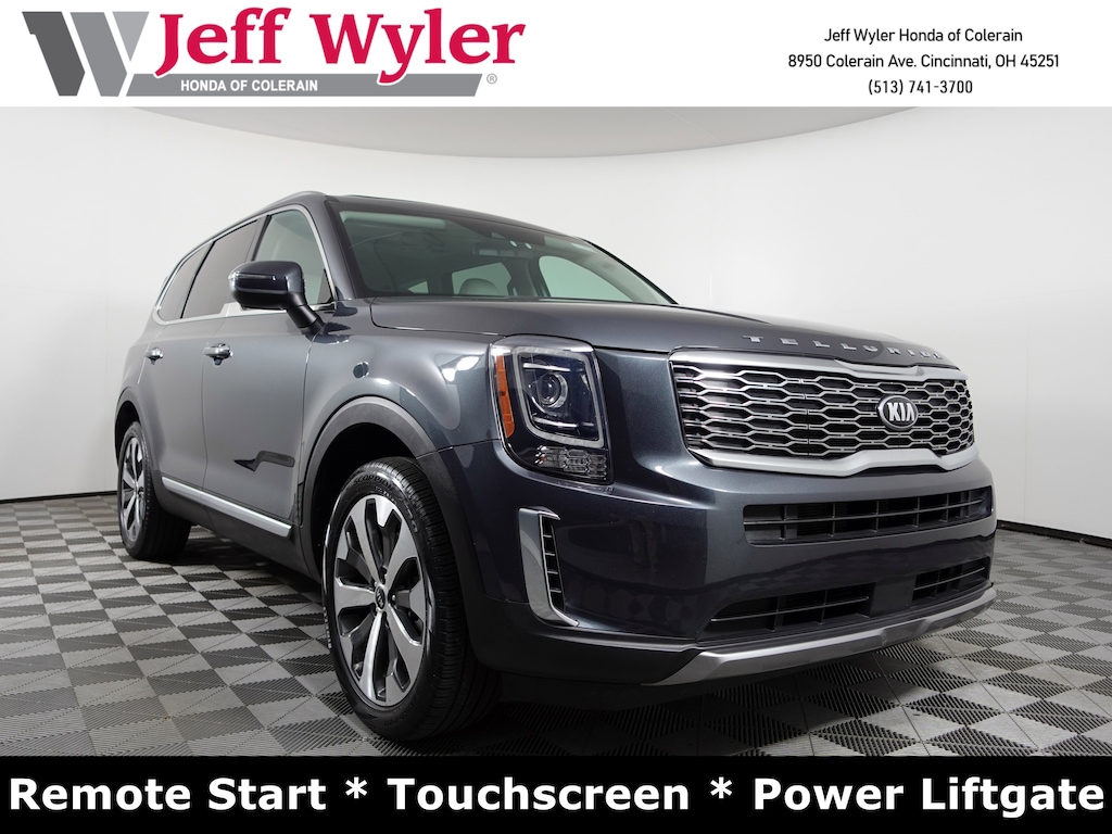 Jeff Wyler Honda of Colerain is pumped up to offer this attractive 2021 Kia Telluride S in Gravity Gray. Well equipped with: 3.648 Axle Ratio, 3rd row seats: split-bench, 4-Wheel Disc Brakes, 6 Speakers, ABS brakes, Air Conditioning, Alloy wheels, AM/FM radio: SiriusXM, Apple CarPlay & Android Auto, Brake assist, Bumpers: body-color, Carpeted Floor Mats, Delay-off headlights, Driver door bin, Driver vanity mirror, Dual front impact airbags, Dual front side impact airbags, Electronic Stability Control, Emergency communication system: 911 Connect, Four wheel independent suspension, Front anti-roll bar, Front Bucket Seats, Front Center Armrest, Front reading lights, Fully automatic headlights, Heated door mirrors, Heated Front Bucket Seats, Heated front seats, Illuminated entry, Knee airbag, Leather Shift Knob, Leather steering wheel, Low tire pressure warning, Multicolored Interior Light Kit, Occupant sensing airbag, Outside temperature display, Overhead airbag, Overhead console, Panic alarm, Passenger door bin, Passenger vanity mirror, Power door mirrors, Power driver seat, Power moonroof, Power steering, Power windows, Radio data system, Radio: AM/FM/SIRIUS Display Audio, Rear air conditioning, Rear anti-roll bar, Rear reading lights, Rear window defroster, Rear window wiper, Reclining 3rd row seat, Remote keyless entry, Roof rack: rails only, Security system, Smart Key w/ Push Button and Remote Start, SOFINO Leathertte Seat Trim, Speed control, Speed-sensing steering, Split folding rear seat, Spoiler, Steering wheel mounted audio controls, Tachometer, Telescoping steering wheel, Tilt steering wheel, Traction control, Trip computer, Turn signal indicator mirrors, Variably intermittent wipers, and Wheels: 7.5" x 20" Machined Finish Alloy.