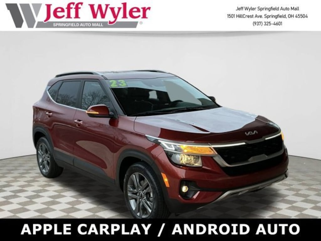 Jeff Wyler Springfield Auto Mall is very proud to offer this good-looking 2023 Kia Seltos S in Mars Orange. Well equipped with: Navigation Package (Radio: AM/FM/MP3 Display Audio w/Navigation), 4-Wheel Disc Brakes, 6 Speakers, 6.052 Axle Ratio, ABS brakes, Air Conditioning, Alloy wheels, AM/FM radio, Apple CarPlay & Android Auto, Auto High-beam Headlights, Automatic temperature control, Brake assist, Bumpers: body-color, Carpet Floor Mats, Cloth & Sofino Premium Leatherette Seat Trim, Delay-off headlights, Driver door bin, Driver vanity mirror, Dual front impact airbags, Dual front side impact airbags, Electronic Stability Control, Emergency communication system: 911 Connect, Exterior Parking Camera Rear, Front anti-roll bar, Front Bucket Seats, Front Center Armrest, Front fog lights, Front reading lights, Front wheel independent suspension, Fully automatic headlights, Heated door mirrors, Illuminated entry, Leather Shift Knob, Low tire pressure warning, Occupant sensing airbag, Outside temperature display, Overhead airbag, Overhead console, Panic alarm, Passenger door bin, Passenger vanity mirror, Power door mirrors, Power steering, Power windows, Radio: AM/FM/MP3 Display Audio, Rear seat center armrest, Rear window defroster, Rear window wiper, Remote keyless entry, Security system, Speed control, Speed-sensing steering, Split folding rear seat, Spoiler, Steering wheel mounted audio controls, Tachometer, Telescoping steering wheel, Tilt steering wheel, Traction control, Trip computer, Turn signal indicator mirrors, Variably intermittent wipers, and Wheels: 17 Alloy w/Dark Gray Finish. Ask about available certifications. Used vehicles 10 years of age or newer with less than 100,000 miles are eligible for the Wyler Assurance Program, but eligible vehicles must pass our reconditioning process and multi-point inspection. Provided the vehicle passes inspection, vehicles will be eligible for the 6 month/6,000 mile limited warranty. The 6 month/6,000 mile limited warranty is NOT available on AS-IS vehicles, wholesale vehicles, lease buyback/pass-thru vehicles or un-inspected vehicles. Note that this program can also apply to vehicles where the remaining factory coverage is less than 6 months or 6,000 miles. Please check the Federal Trade Commission (FTC) Buyers guide on the vehicle for full details as to whether or not warranty coverage may apply. Contact Dealer for additional details. The Wyler Assurance 6 month/6,000 Mile limited warranty ends 6 months from the date of the Retail Purchase Agreement (BUYERS ORDER) or when the vehicle's odometer registers 6,000 additional miles to the mileage listed on the BUYERS ORDER, whichever comes first. Your Deductible - The warranty holder on your contract pays the first $100 of each covered repair.