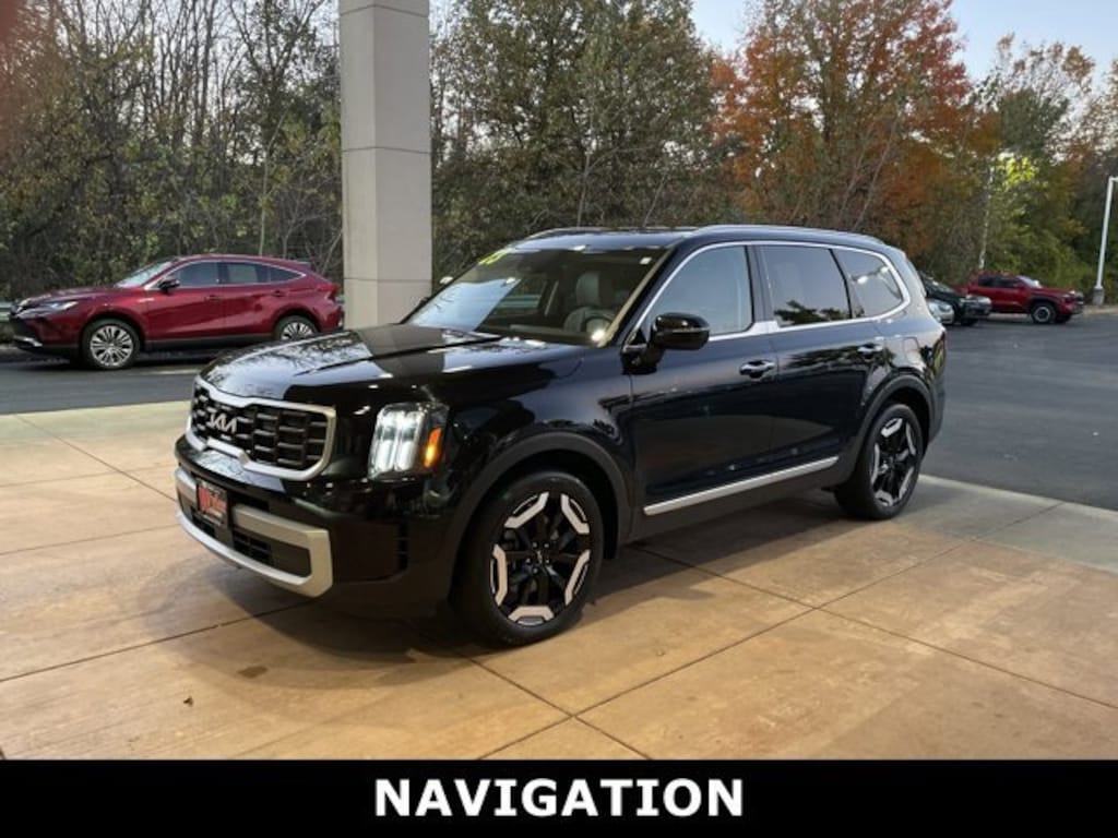 Jeff Wyler Springfield Auto Mall is honored to offer this wonderful-looking 2023 Kia Telluride S in Ebony Black. Well equipped with: 3.648 Axle Ratio, 3rd row seats: split-bench, 4-Wheel Disc Brakes, 6 Speakers, ABS brakes, Air Conditioning, Alloy wheels, AM/FM radio: SiriusXM, Apple CarPlay & Android Auto, Auto High-beam Headlights, Automatic temperature control, Brake assist, Bumpers: body-color, Carpet Floor Mats, Delay-off headlights, Driver door bin, Driver vanity mirror, Dual front impact airbags, Dual front side impact airbags, Electronic Stability Control, Emergency communication system: 911 Connect, Exterior Parking Camera Rear, Four wheel independent suspension, Front anti-roll bar, Front Bucket Seats, Front Center Armrest, Front dual zone A/C, Front reading lights, Fully automatic headlights, Heated door mirrors, Heated Front Bucket Seats, Heated front seats, Illuminated entry, Knee airbag, Leather Shift Knob, Leather steering wheel, Low tire pressure warning, Navigation System, Occupant sensing airbag, Outside temperature display, Overhead airbag, Overhead console, Panic alarm, Passenger door bin, Passenger vanity mirror, Power door mirrors, Power driver seat, Power steering, Power windows, Radio data system, Radio: AM/FM Display Audio System, Rear air conditioning, Rear anti-roll bar, Rear audio controls, Rear reading lights, Rear side impact airbag, Rear window defroster, Rear window wiper, Reclining 3rd row seat, Remote keyless entry, Roof rack: rails only, Security system, Smart Key w/ Push Button and Remote Start, Speed control, Speed-sensing steering, Split folding rear seat, Spoiler, Steering wheel mounted audio controls, SynTex Synthetic Leather Seat Trim, Tachometer, Telescoping steering wheel, Tilt steering wheel, Traction control, Trip computer, Turn signal indicator mirrors, Variably intermittent wipers, and Wheels: 20 x 7.5 Black Finish. Ask about available certifications. Used vehicles 10 years of age or newer with less than 100,000 miles are eligible for the Wyler Assurance Program, but eligible vehicles must pass our reconditioning process and multi-point inspection. Provided the vehicle passes inspection, vehicles will be eligible for the 6 month/6,000 mile limited warranty. The 6 month/6,000 mile limited warranty is NOT available on AS-IS vehicles, wholesale vehicles, lease buyback/pass-thru vehicles or un-inspected vehicles. Note that this program can also apply to vehicles where the remaining factory coverage is less than 6 months or 6,000 miles. Please check the Federal Trade Commission (FTC) Buyers guide on the vehicle for full details as to whether or not warranty coverage may apply. Contact Dealer for additional details. The Wyler Assurance 6 month/6,000 Mile limited warranty ends 6 months from the date of the Retail Purchase Agreement (BUYERS ORDER) or when the vehicle's odometer registers 6,000 additional miles to the mileage listed on the BUYERS ORDER, whichever comes first. Your Deductible - The warranty holder on your contract pays the first $100 of each covered repair.