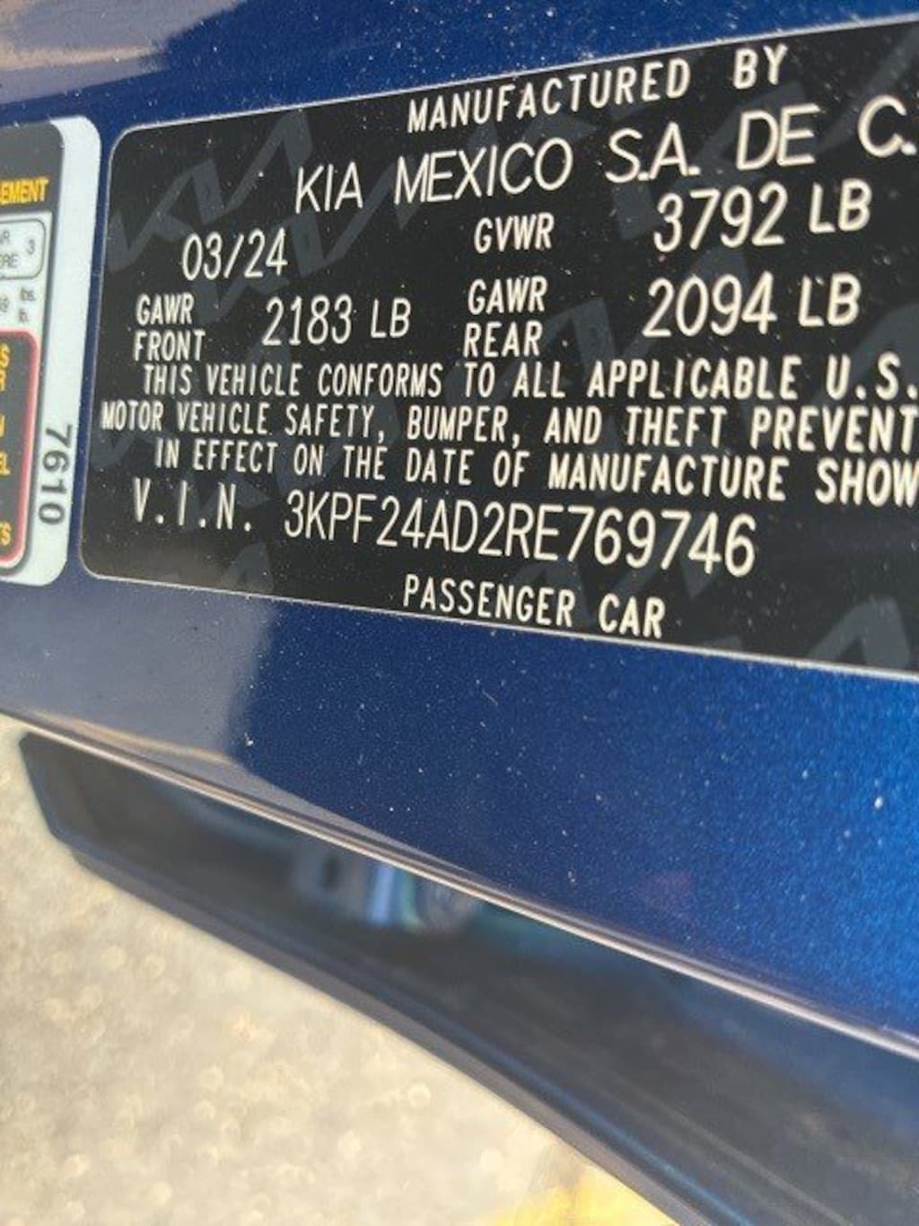 Jeff Wyler Springfield Auto Mall is excited to offer this great 2024 Kia Forte LXS in Deep Sea Blue. Well equipped with: LXS Technology Package (Blind-Spot Collision-Avoidance Assist, Heated Outside Mirrors, Rear Cross-Traffic Collision-Avoidance Assist, and Safe Exit Warning (SEW)), 16" x 6.5J Alloy Wheels, 4 Speakers, 4-Wheel Disc Brakes, ABS brakes, Air Conditioning, Alloy wheels, AM/FM radio, Apple CarPlay & Android Auto, Auto High-beam Headlights, Brake assist, Bumpers: body-color, Cloth Seat Trim, Delay-off headlights, Driver door bin, Driver vanity mirror, Dual front impact airbags, Dual front side impact airbags, Electronic Stability Control, Exterior Parking Camera Rear, Front anti-roll bar, Front Bucket Seats, Front Center Armrest, Front reading lights, Front wheel independent suspension, Fully automatic headlights, Illuminated entry, Low tire pressure warning, Occupant sensing airbag, Outside temperature display, Overhead airbag, Overhead console, Panic alarm, Passenger door bin, Passenger vanity mirror, Power door mirrors, Power steering, Power windows, Radio data system, Radio: 8" Display Audio, Rear window defroster, Remote keyless entry, Security system, Speed control, Split folding rear seat, Steering wheel mounted audio controls, Tachometer, Telescoping steering wheel, Tilt steering wheel, Traction control, Trip computer, and Variably intermittent wipers. Ask about available certifications. Used vehicles 10 years of age or newer with less than 100,000 miles are eligible for the Wyler Assurance Program, but eligible vehicles must pass our reconditioning process and multi-point inspection. Provided the vehicle passes inspection, vehicles will be eligible for the 6 month/6,000 mile limited warranty. The 6 month/6,000 mile limited warranty is NOT available on AS-IS vehicles, wholesale vehicles, lease buyback/pass-thru vehicles or un-inspected vehicles. Note that this program can also apply to vehicles where the remaining factory coverage is less than 6 months or 6,000 miles. Please check the Federal Trade Commission (FTC) Buyers guide on the vehicle for full details as to whether or not warranty coverage may apply. Contact Dealer for additional details. The Wyler Assurance 6 month/6,000 Mile limited warranty ends 6 months from the date of the Retail Purchase Agreement (BUYERS ORDER) or when the vehicle's odometer registers 6,000 additional miles to the mileage listed on the BUYERS ORDER, whichever comes first. Your Deductible - The warranty holder on your contract pays the first $100 of each covered repair.