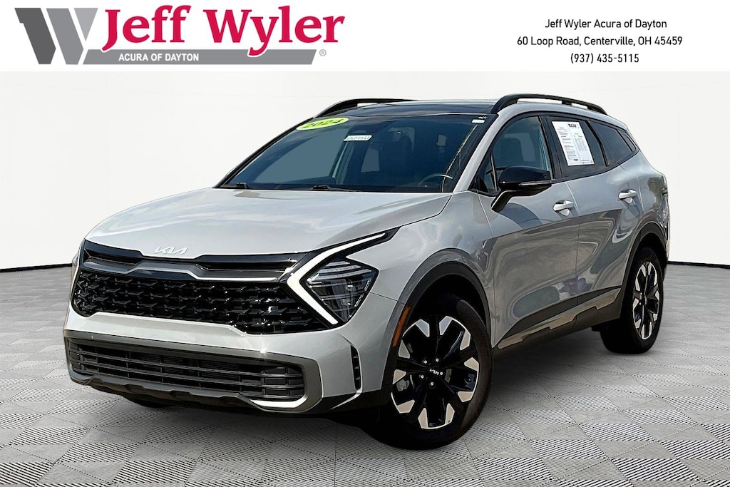 Jeff Wyler Acura of Dayton is pumped up to offer this superb 2024 Kia Sportage X-Line in Wolf Gray. X-Line Premium Package (LED Interior Lighting, Panoramic Sunroof, and Smart Power Liftgate), AWD, 4-Wheel Disc Brakes, 6 Speakers, ABS brakes, Air Conditioning, Alloy wheels, AM/FM radio: SiriusXM, Apple CarPlay & Android Auto, Auto High-beam Headlights, Automatic temperature control, Axle Ratio: 3.648, Brake assist, Bumpers: body-color, Cargo Cover, Cargo Mat, Carpet Floor Mats X-Line, Compass, Cross Bars X-Line, Delay-off headlights, Driver door bin, Driver vanity mirror, Dual front impact airbags, Dual front side impact airbags, EC Mirror w/HomeLink, Electronic Stability Control, Emergency communication system, Four wheel independent suspension, Front anti-roll bar, Front Bucket Seats, Front Center Armrest, Front dual zone A/C, Fully automatic headlights, Heated door mirrors, Heated Front Bucket Seats, Heated front seats, Illuminated entry, Interior Lighting, Leather steering wheel, Low tire pressure warning, Navigation System, Occupant sensing airbag, Outside temperature display, Overhead airbag, Overhead console, Panic alarm, Passenger door bin, Passenger vanity mirror, Power door mirrors, Power driver seat, Power steering, Power windows, Premium Leatherette Seat Trim, Radio: AM/FM/HD Audio System, Rain sensing wipers, Rear anti-roll bar, Rear seat center armrest, Rear side impact airbag, Rear window defroster, Rear window wiper, Remote keyless entry, Security system, Speed control, Speed-sensing steering, Split folding rear seat, Spoiler, Steering wheel mounted audio controls, Tachometer, Telescoping steering wheel, Tilt steering wheel, Traction control, Trip computer, Turn signal indicator mirrors, Variably intermittent wipers, and Wheels: 19" Gloss Black Alloy Our PRE-OWNED vehicles are put through a rigorous 167- POINT QUALITY ASSURANCE INSPECTION along with an average amount of over $1,400.00 SPENT to recondition each vehicle so we can be sure to deliver you the highest quality vehicle like you deserve! ***ONLINE PRICE DOES NOT INCLUDE WYLER FAMILY FIRST PACKAGE*** CARFAX One-Owner.