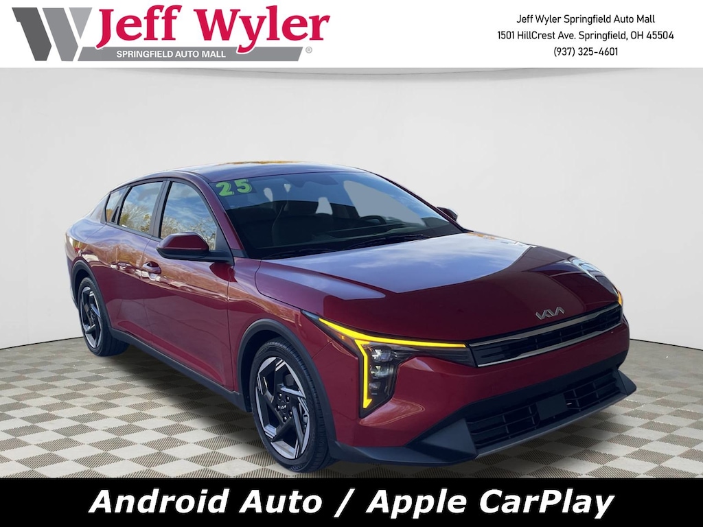 Jeff Wyler Springfield Auto Mall is pleased to offer this stunning-looking 2025 Kia K4 EX in Currant Red. Well equipped with: 4-Wheel Disc Brakes, 6 Speakers, ABS brakes, Air Conditioning, Alloy wheels, AM/FM radio: SiriusXM, Apple CarPlay & Android Auto, Auto High-beam Headlights, Automatic temperature control, Brake assist, Bumpers: body-color, Delay-off headlights, Driver door bin, Driver vanity mirror, Dual front impact airbags, Dual front side impact airbags, Electronic Stability Control, Front anti-roll bar, Front Bucket Seats, Front Center Armrest, Front dual zone A/C, Front reading lights, Front wheel independent suspension, Fully automatic headlights, Heated door mirrors, Illuminated entry, Low tire pressure warning, Occupant sensing airbag, Outside temperature display, Overhead airbag, Overhead console, Panic alarm, Passenger door bin, Passenger vanity mirror, Power door mirrors, Power steering, Power windows, Radio data system, Radio: 12.3" Touchscreen Audio Display, Rear side impact airbag, Rear window defroster, Remote keyless entry, Security system, Speed control, Split folding rear seat, Steering wheel mounted audio controls, Tachometer, Telescoping steering wheel, Tilt steering wheel, Traction control, Trip computer, Upgraded Cloth Seat Trim, Variably intermittent wipers, and Wheels: 17" x 7.0J Black Machined Alloy. Ask about available certifications. Used vehicles 10 years of age or newer with less than 100,000 miles are eligible for the Wyler Assurance Program, but eligible vehicles must pass our reconditioning process and multi-point inspection. Provided the vehicle passes inspection, vehicles will be eligible for the 6 month/6,000 mile limited warranty. The 6 month/6,000 mile limited warranty is NOT available on AS-IS vehicles, wholesale vehicles, lease buyback/pass-thru vehicles or un-inspected vehicles. Note that this program can also apply to vehicles where the remaining factory coverage is less than 6 months or 6,000 miles. Please check the Federal Trade Commission (FTC) Buyers guide on the vehicle for full details as to whether or not warranty coverage may apply. Contact Dealer for additional details. The Wyler Assurance 6 month/6,000 Mile limited warranty ends 6 months from the date of the Retail Purchase Agreement (BUYERS ORDER) or when the vehicle's odometer registers 6,000 additional miles to the mileage listed on the BUYERS ORDER, whichever comes first. Your Deductible - The warranty holder on your contract pays the first $100 of each covered repair.