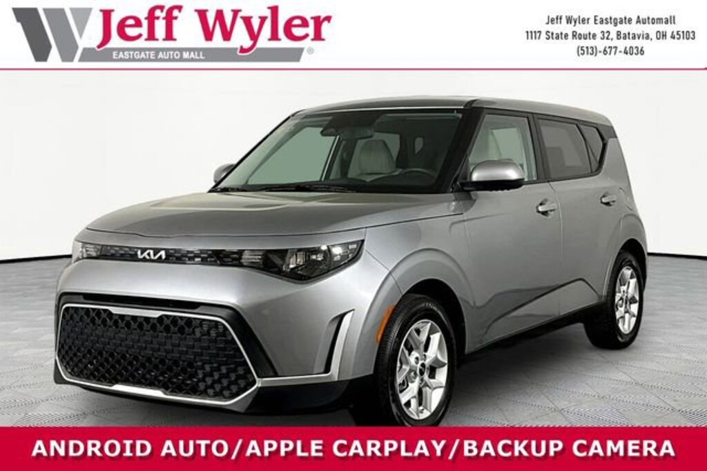Jeff Wyler Eastgate Auto Mall is very proud to offer this terrific 2025 Kia Soul LX in Gray. Well equipped with: 4-Wheel Disc Brakes, 6 Speakers, 6.5J x 16" Alloy Wheels, ABS brakes, Air Conditioning, Apple CarPlay & Android Auto, Auto High-beam Headlights, Brake assist, Bumpers: body-color, Compass, Delay-off headlights, Driver door bin, Driver vanity mirror, Dual front impact airbags, Dual front side impact airbags, Electronic Stability Control, Exterior Parking Camera Rear, Front anti-roll bar, Front Bucket Seats, Front Center Armrest, Front reading lights, Front wheel independent suspension, Fully automatic headlights, Illuminated entry, Low tire pressure warning, Occupant sensing airbag, Outside temperature display, Overhead airbag, Overhead console, Panic alarm, Passenger door bin, Passenger vanity mirror, Power door mirrors, Power steering, Power windows, Radio data system, Radio: AM/FM/MP3/HD Audio System, Rear window defroster, Rear window wiper, Remote keyless entry, Speed control, Speed-sensing steering, Split folding rear seat, Steering wheel mounted audio controls, Tachometer, Telescoping steering wheel, Tilt steering wheel, Traction control, Trip computer, Variably intermittent wipers, and Woven & Tricot Cloth Seat Trim. CARFAX One-Owner. Clean CARFAX. Ask about available certifications. Used vehicles 10 years of age or newer with less than 100,000 miles are eligible for the Wyler Assurance Program, but eligible vehicles must pass our reconditioning process and multi-point inspection. Provided the vehicle passes inspection, vehicles will be eligible for the 6 month/6,000 mile limited warranty. The 6 month/6,000 mile limited warranty is NOT available on AS-IS vehicles, wholesale vehicles, lease buyback/pass-thru vehicles or un-inspected vehicles. Note that this program can also apply to vehicles where the remaining factory coverage is less than 6 months or 6,000 miles. Please check the Federal Trade Commission (FTC) Buyers guide on the vehicle for full details as to whether or not warranty coverage may apply. Contact Dealer for additional details. The Wyler Assurance 6 month/6,000 Mile limited warranty ends 6 months from the date of the Retail Purchase Agreement (BUYERS ORDER) or when the vehicle's odometer registers 6,000 additional miles to the mileage listed on the BUYERS ORDER, whichever comes first. Your Deductible - The warranty holder on your contract pays the first $100 of each covered repair.