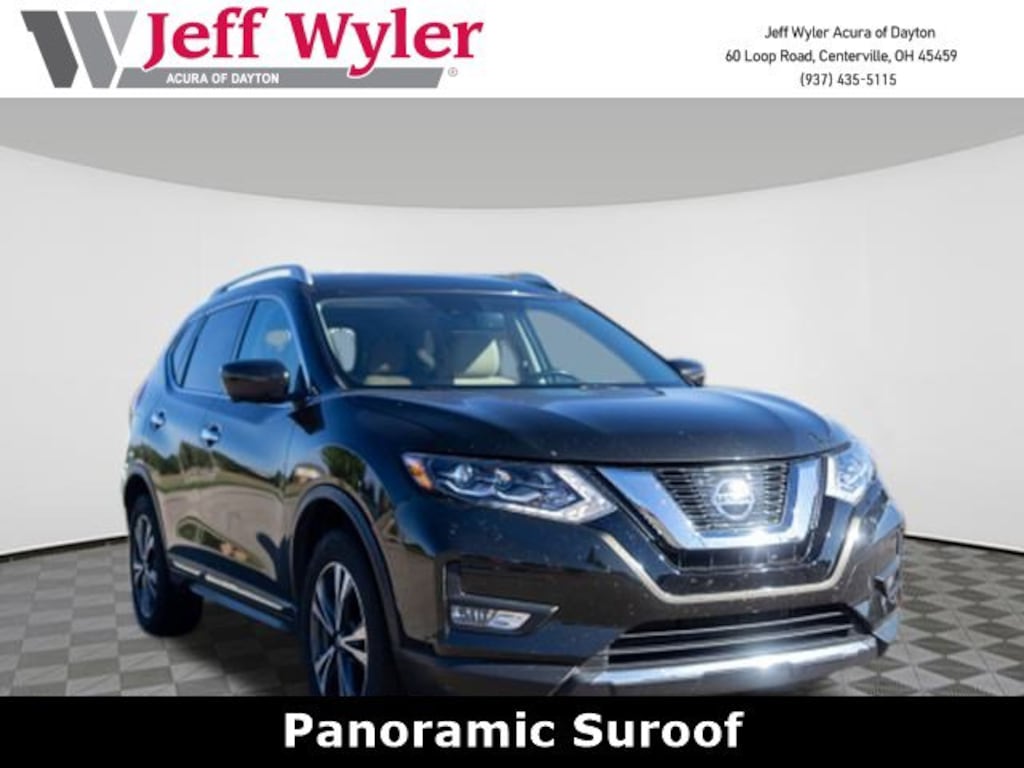 Jeff Wyler Acura of Dayton is honored to offer this great-looking 2017 Nissan Rogue SL in Midnight Jade. AWD, 18" Alloy Wheels, 4-Wheel Disc Brakes, 5.694 Axle Ratio, 9 Speakers, ABS brakes, Air Conditioning, Alloy wheels, AM/FM radio: SiriusXM, Anti-whiplash front head restraints, Auto High-beam Headlights, Auto-dimming Rear-View mirror, Automatic temperature control, Black Splash Guards (Set of 4), Blind Spot Warning, Brake assist, Bumpers: body-color, CD player, Delay-off headlights, Driver door bin, Driver vanity mirror, Dual front impact airbags, Dual front side impact airbags, Electronic Stability Control, Emergency communication system: NissanConnect Services, Floor Mats & 2-PC Cargo Area Protector, Four wheel independent suspension, Front anti-roll bar, Front Bucket Seats, Front Center Armrest w/Storage, Front dual zone A/C, Front fog lights, Front reading lights, Fully automatic headlights, Garage door transmitter: HomeLink, Heated door mirrors, Heated front seats, Heated steering wheel, Illuminated entry, Leather Appointed Seat Trim, Leather Shift Knob, Low tire pressure warning, Memory seat, Navigation System, Occupant sensing airbag, Outside temperature display, Overhead airbag, Overhead console, Panic alarm, Passenger door bin, Passenger vanity mirror, Power door mirrors, Power driver seat, Power Liftgate, Power steering, Power windows, Quick Comfort Heated Front Bucket Seats, Radio data system, Rear anti-roll bar, Rear seat center armrest, Rear window defroster, Rear window wiper, Remote keyless entry, Retractable Cargo Cover, Roof rack: rails only, Security system, Speed control, Speed-sensing steering, Split folding rear seat, Spoiler, Steering wheel mounted audio controls, Tachometer, Telescoping steering wheel, Tilt steering wheel, Traction control, Trip computer, Turn signal indicator mirrors, and Variably intermittent wipers Our PRE-OWNED vehicles are put through a rigorous 167- POINT QUALITY ASSURANCE INSPECTION along with an average amount of over $1,400.00 SPENT to recondition each vehicle so we can be sure to deliver you the highest quality vehicle like you deserve! ***ONLINE PRICE DOES NOT INCLUDE WYLER FAMILY FIRST PACKAGE*** Stop by 4136 Shelbyville Road to see for yourself, or give us a call @ 502-897-3151 to schedule your test drive! CARFAX One-Owner.