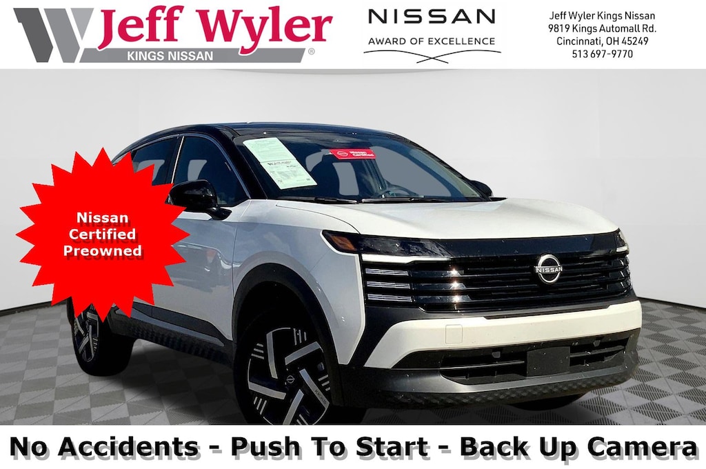Jeff Wyler Kings Nissan is excited to offer this outstanding-looking 2025 Nissan Kicks SV in Aspen White Tricoat/Super Black. Well equipped with: 2-Tone Premium Paint, 4 Speakers, 4-Wheel Disc Brakes, ABS brakes, Air Conditioning, AM/FM radio: Sirius, Auto High-beam Headlights, Blind Spot Warning, Brake assist, Bumpers: body-color, Carpeted Floor Mats & Underfloor Protector, Cloth Seat Trim, Driver door bin, Driver vanity mirror, Dual front impact airbags, Dual front side impact airbags, Electronic Stability Control, Front anti-roll bar, Front Bucket Seats, Front Center Armrest, Front reading lights, Front wheel independent suspension, Fully automatic headlights, Illuminated entry, Knee airbag, Low tire pressure warning, Occupant sensing airbag, Outside temperature display, Overhead airbag, Panic alarm, Passenger door bin, Passenger vanity mirror, Power door mirrors, Power steering, Power windows, Radio data system, Radio: AM/FM Audio System, Rear anti-roll bar, Rear Parking Sensors, Rear reading lights, Rear side impact airbag, Rear window defroster, Rear window wiper, Remote keyless entry, Security system, Speed control, Speed-sensing steering, Splash Guards, Split folding rear seat, Spoiler, Sport steering wheel, Steering wheel mounted audio controls, Tachometer, Telescoping steering wheel, Tilt steering wheel, Traction control, Trip computer, Variably intermittent wipers, Wheels: 17" Steel Flex w/Full Covers, and Wireless Apple CarPlay/Wireless Android Auto.Ask about available certifications.