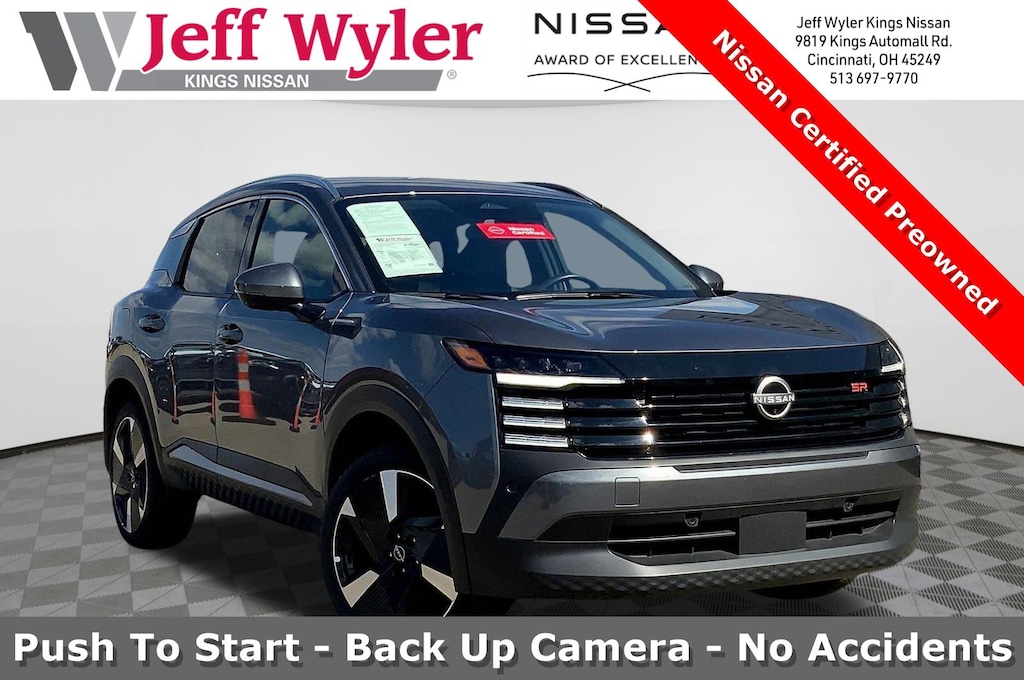 Jeff Wyler Kings Nissan is pleased to offer this great 2025 Nissan Kicks SR in Gun Metallic. Well equipped with: 17" Alloy Wheels, 19" Alloy Wheels, 4-Wheel Disc Brakes, 6 Speakers, ABS brakes, Air Conditioning, Alloy wheels, AM/FM radio: Sirius, Auto High-beam Headlights, Automatic temperature control, Brake assist, Bumpers: body-color, Carpeted Floor Mats & Underfloor Protector, Cloth/Leatherette Seat Trim, Delay-off headlights, Driver door bin, Driver vanity mirror, Dual front impact airbags, Dual front side impact airbags, Electronic Stability Control, Front anti-roll bar, Front Bucket Seats, Front Center Armrest, Front reading lights, Front wheel independent suspension, Fully automatic headlights, Illuminated entry, Knee airbag, Leather Shift Knob, Leather steering wheel, Low tire pressure warning, Occupant sensing airbag, Outside temperature display, Overhead airbag, Overhead console, Panic alarm, Passenger door bin, Passenger vanity mirror, Power door mirrors, Power steering, Power windows, Radio data system, Radio: AM/FM Audio System, Rear anti-roll bar, Rear reading lights, Rear seat center armrest, Rear side impact airbag, Rear window defroster, Rear window wiper, Remote keyless entry, Security system, Speed control, Speed-sensing steering, Splash Guards, Split folding rear seat, Spoiler, Sport steering wheel, Steering wheel mounted audio controls, Tachometer, Telescoping steering wheel, Tilt steering wheel, Traction control, Trip computer, Turn signal indicator mirrors, Variably intermittent wipers, and Wireless Apple CarPlay/Wireless Android Auto.Ask about available certifications.