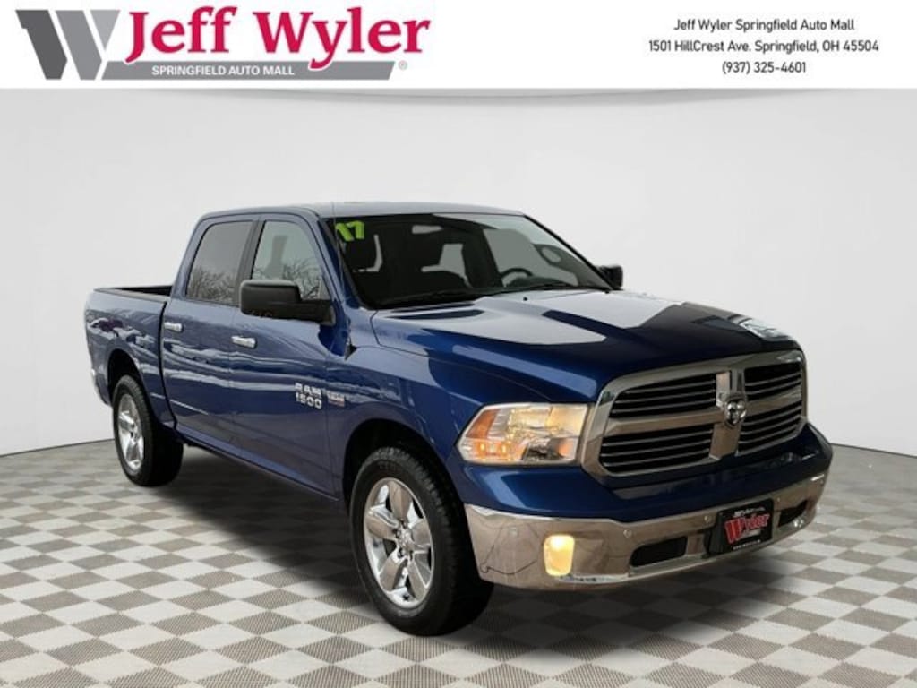 Jeff Wyler Springfield Auto Mall is proud to offer this gorgeous-looking 2017 Ram 1500 Big Horn in Blue Streak Pearlcoat. Well equipped with: Big Horn Regional Package, Quick Order Package 26S Big Horn (115V Auxiliary Power Outlet, 40/20/40 Split Bench Seat, 6 Month Trial (Reg. Required), 6 Month Trial (Registration Required), 8.4 Touchscreen Display, Air Conditioning ATC w/Dual Zone Control, Audio Jack Input for Mobile Devices, Auto-Dimming Exterior Mirrors, Auto-Dimming Rear-View Mirror, Big Horn Badge, Bright/Bright Billets Grille, Charge Only Remote USB Port, Class IV Receiver Hitch, Dual Rear Exhaust w/Bright Tips, Electric Shift-On-Demand Transfer Case, Electroluminescent Instrument Cluster, Exterior Mirrors Courtesy Lamps, Exterior Mirrors w/Supplemental Signals, Fog Lamps, Folding Flat Load Floor Storage, For Details Visit DriveUconnect.com, Front Armrest w/3 Cupholders, Front Center Seat Cushion Storage, Glove Box Lamp, GPS Antenna Input, Integrated Voice Command w/Bluetooth, Leather Wrapped Steering Wheel, LED Bed Lighting, Media Hub (USB, AUX), Nav-Capable! See Dealer for Details, Overhead Console w/Garage Door Opener, ParkSense Front/Rear Park Assist System, ParkView Rear Back-Up Camera, Power 10-Way Driver Seat, Power Heated Fold-Away Mirrors, Power Lumbar Adjust, Power-Folding Mirrors, Premium Cloth 40/20/40 Bench Seat, Radio: Uconnect 3C w/8.4 Display, Rear 60/40 Split Folding Seat, Rear Dome w/On/Off Switch Lamp, Remote Start System, Remote USB Port, Security Alarm, SIRIUSXM Satellite Radio, Steering Wheel Mounted Audio Controls, Storage Tray, Sun Visors w/Illuminated Vanity Mirrors, Uconnect Access, Underhood Lamp, Universal Garage Door Opener, and Wheels: 20 x 8 Aluminum Chrome Clad), 17 x 7 Aluminum Wheels, 4-Wheel Disc Brakes, 6 Speakers, ABS brakes, Active Grille Shutters, Air Conditioning, Alloy wheels, AM/FM radio, Anti-Spin Differential Rear Axle, Black Exterior Mirrors, Black Rotary Shifter, Brake assist, Bumpers: chrome, Center Hub, Cloth 40/20/40 Bench Seat, Compass, Delay-off headlights, Driver door bin, Dual front impact airbags, Dual front side impact airbags, Electronic Shift, Electronic Stability Control, Exterior Mirrors w/Heating Element, Front anti-roll bar, Front Center Armrest w/Storage, Front reading lights, Front wheel independent suspension, Fully automatic headlights, Heated door mirrors, Illuminated entry, Low tire pressure warning, Occupant sensing airbag, Outside temperature display, Overhead airbag, Overhead console, Panic alarm, Passenger door bin, Passenger vanity mirror, Power door mirrors, Power steering, Power Sunroof, Power windows, Radio data system, Radio: Uconnect 3 w/5 Display, Rear anti-roll bar, Rear seat center armrest, Rear step bumper, Rear Window Defroster, Remote keyless entry, Single Disc Remote CD Player, Speed control, Tachometer, Tilt steering wheel, Tip Start, Traction control, Trailer Brake Control, Trip computer, Variably intermittent wipers, and VoltmeteR. Ask about available certifications. Used vehicles 10 years of age or newer with less than 100,000 miles are eligible for the Wyler Assurance Program, but eligible vehicles must pass our reconditioning process and multi-point inspection. Provided the vehicle passes inspection, vehicles will be eligible for the 6 month/6,000 mile limited warranty. The 6 month/6,000 mile limited warranty is NOT available on AS-IS vehicles, wholesale vehicles, lease buyback/pass-thru vehicles or un-inspected vehicles. Note that this program can also apply to vehicles where the remaining factory coverage is less than 6 months or 6,000 miles. Please check the Federal Trade Commission (FTC) Buyers guide on the vehicle for full details as to whether or not warranty coverage may apply. Contact Dealer for additional details. The Wyler Assurance 6 month/6,000 Mile limited warranty ends 6 months from the date of the Retail Purchase Agreement (BUYERS ORDER) or when the vehicle's odomete