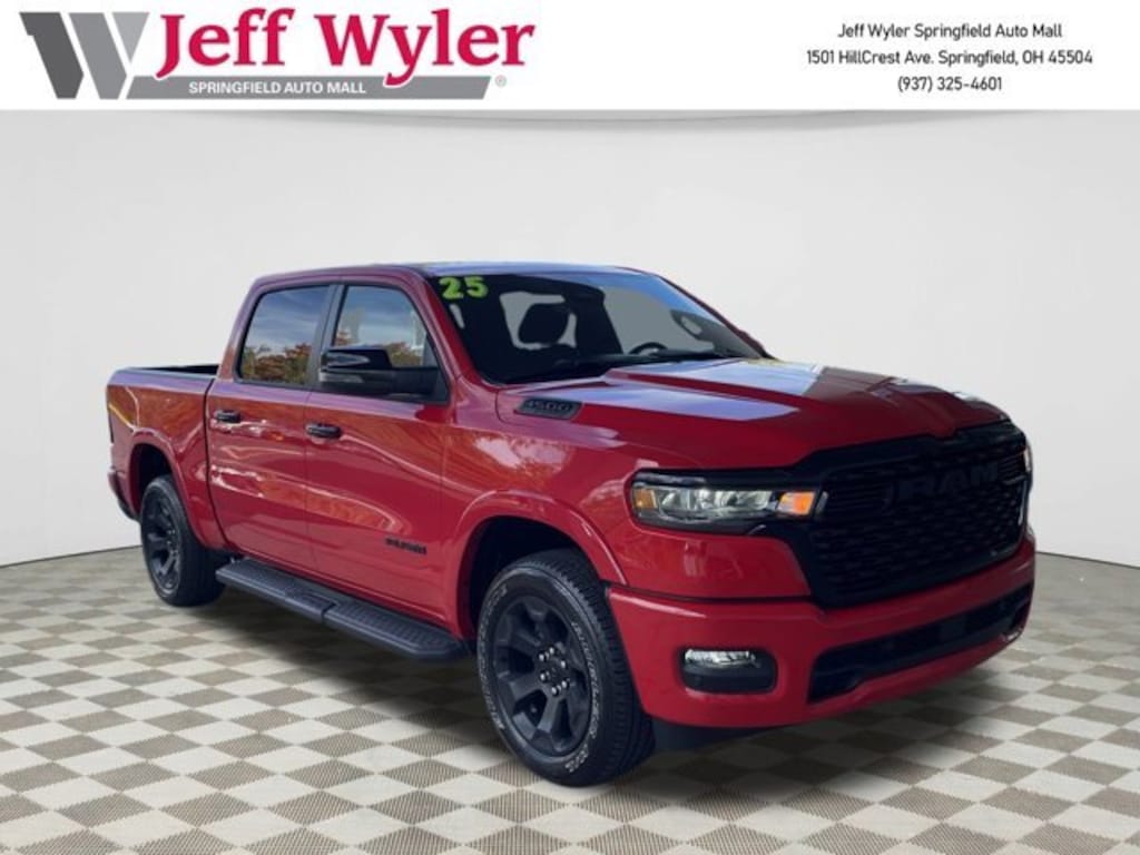 Jeff Wyler Springfield Auto Mall is pleased to offer this beautiful 2025 Ram 1500 Big Horn/Lone Star in Flame Red Clearcoat. Well equipped with: Bed Utility Group (Exterior 115V AC Outlet, MOPAR 4 Adjustable Cargo Tie-Down Hooks, MOPAR Spray In Bedliner, and Pick-Up Box Lighting), Big Horn Level 2 Equipment Group (115V Auxiliary Power Outlet, 115V Auxiliary Rear Power Outlet, 12 Touchscreen Display, 2nd Row In Floor Storage Bins, 400W Inverter, 4G LTE Wi-Fi Hot Spot, 9 Amplified Speakers w/Subwoofer, Air Conditioning ATC w/Dual Zone Control, Apple CarPlay, Auto Power-Folding Mirrors, Auto-Dimming Exterior Driver Mirror, Auto-Dimming Rear-View Mirror, Black Exterior Mirrors, Black Premium Power Mirrors, Cluster 7.0 TFT Color Display, Configurable Drive Mode, Connected Travel & Traffic Services, Connectivity - US/Canada, Convex Wide-Angle Exterior Mirror Insert, Exterior Mirrors Courtesy Lamps, Exterior Mirrors w/Heating Element, Exterior Mirrors w/Supplemental Signals, Glove Box Lamp, Google Android Auto, GPS Antenna Input, GPS Navigation, HD Radio, Heated Front Seats, Heated Steering Wheel, Integrated Voice Command w/Bluetooth, Leather Wrapped Steering Wheel, LED Dome Lamp w/On/Off Switch, LED Footwell Lighting, Media Hub w/2 Charge Only USBs, Overhead LED Lamps, Power 2-Way Driver Lumbar Adjust, Power Adjust 8-Way Driver Seat, Power Adjustable Pedals, Premium Overhead Console, Radio: Uconnect 5 Nav w/12.0 Display, Rear Power Sliding Window, Rear Window Defroster, Remote Tailgate Release, Security Alarm, SiriusXM w/360L, Steering Wheel Mounted Audio Controls, Sun Visors w/Illuminated Vanity Mirrors, Universal Garage Door Opener, and USB Host Flip), Night Edition (3 Rear Seat Head Restraints, 4 Way Front Headrests, Accent Color Door Handles, Accent Color Premium Power Mirrors, Accent Color Tailgate Handle, Anti-Spin Differential Rear Axle, Black Exterior Truck Badging, Black Headlamp Bezels, Black Interior Accents, Black Painted Exterior Mirrors Caps, Black Tail Lamp Bezels, Body Color Front Bumper, Body Color Rear Bumper w/Step Pads, Bucket Seats, Deluxe Cloth Bucket Seats, Front Seat Back Map Pockets, Full Length Floor Console, Grille Black Surround Black Mesh, Manual Adjust 4-Way Front Passenger Seat, RAM Grille Badge - Black, Rear 60/40 Folding Seat, Rear Center Armrest, and Wheels: 20 x 9.0 Aluminum Painted Clad), Quick Order Package 21Z Big Horn, 4-Wheel Disc Brakes, 6 Speakers, ABS brakes, Air Conditioning, Alloy wheels, AM/FM radio, Apple CarPlay/Android Auto, Auto High-beam Headlights, Brake assist, Bumpers: chrome, Cloth Bench Seat, Cluster 12 TFT Color Display, Compass, Delay-off headlights, Driver door bin, Dual front impact airbags, Dual front side impact airbags, Electronic Stability Control, Front anti-roll bar, Front Center Armrest w/Storage, Front fog lights, Front License Plate Bracket, Front reading lights, Front wheel independent suspension, Fully automatic headlights, Heated door mirrors, Illuminated entry, Low tire pressure warning, Manual Folding Exterior Mirrors, Mopar Black Tubular Side Steps, MOPAR Front & Rear Rubber Floor Mats, Occupant sensing airbag, Outside temperature display, Overhead airbag, Overhead console, Panic alarm, ParkView Rear Back-Up Camera, Passenger door bin, Passenger vanity mirror, Power door mirrors, Power steering, Power windows, Radio data system, Radio: Uconnect 5 W w/8.4 Display, RAM Grille Badge - Chrome, Rear anti-roll bar, Rear seat center armrest, Rear step bumper, Rear Underseat Compartment Storage, Remote keyless entry, Speed control, Split folding rear seat, Supplier Part Tracking (J-1), Tachometer, Telescoping steering wheel, Tilt steering wheel, Traction control, Trip computer, Variably intermittent wipers, Voltmeter, and Wheels: 18 x 8 Cast-Aluminum Painted. Ask about available certifications. Used vehicles 10 years of age or newer with less than 100,000 miles are eligible for the Wyler Assurance Program, but eligibl