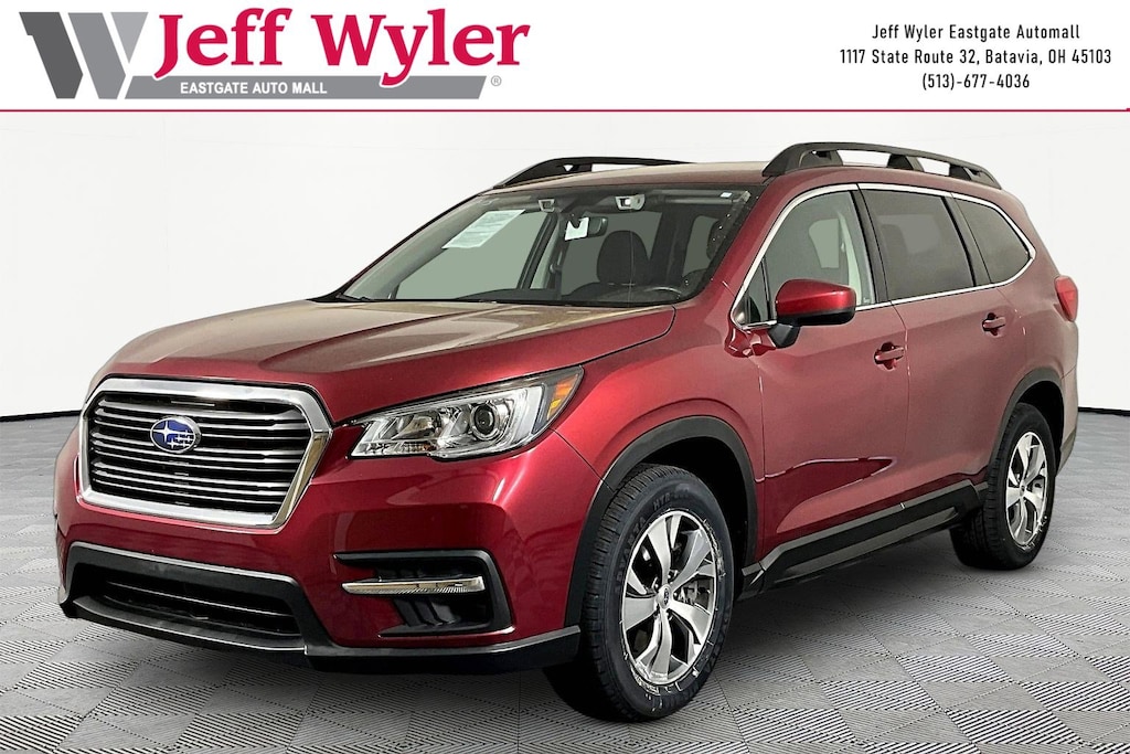 Jeff Wyler Eastgate Auto Mall is honored to offer this great-looking 2019 Subaru Ascent Premium in Crimson Red Pearl. Well equipped with: PRG & KAS & ADM & RAB (Auto-Dimming Rear View Compass Mirror w/HomeLink, Keyless Access w/Push-Button Start, Power Rear Gate w/Automatic Close & Height Memory, and Reverse Automatic Braking (RAB) System), 3rd row seats: bench, 4-Wheel Disc Brakes, 6 Speakers, ABS brakes, Air Conditioning, All-Weather Floor Liners, Alloy wheels, AM/FM radio: SiriusXM, Automatic temperature control, Axle Ratio: 4.44, Brake assist, Bumpers: body-color, CD player, Delay-off headlights, Driver door bin, Driver vanity mirror, Dual front impact airbags, Dual front side impact airbags, Electronic Stability Control, Emergency communication system: STARLINK Safety and Security, Exterior Parking Camera Rear, Four wheel independent suspension, Front anti-roll bar, Front Bucket Seats, Front Center Armrest, Front dual zone A/C, Front reading lights, Fully automatic headlights, Heated door mirrors, Heated Front Bucket Seats, Heated front seats, Illuminated entry, Knee airbag, Low tire pressure warning, Occupant sensing airbag, Outside temperature display, Overhead airbag, Overhead console, Panic alarm, Passenger door bin, Passenger vanity mirror, Power door mirrors, Power driver seat, Power steering, Power windows, Radio data system, Radio: Subaru STARLINK 8.0" Multimedia Plus System, Rear air conditioning, Rear anti-roll bar, Rear Bumper Cover, Rear reading lights, Rear Seatback Protector, Rear window defroster, Rear window wiper, Remote keyless entry, Roof rack: rails only, Security system, Speed control, Spill Resistant Cloth Upholstery, Split folding rear seat, Spoiler, STARLINK/Apple CarPlay/Android Auto, Steering wheel mounted audio controls, Tachometer, Telescoping steering wheel, Tilt steering wheel, Traction control, Trip computer, Variably intermittent wipers, and Wheels: 18" Gray Aluminum Alloy w/Machine Finish. Awards: * 2019 KBB.com 5-Year Cost to Own Awards * 2019 KBB.com 10 Favorite New-for-2019 Cars * 2019 KBB.com Brand Image Awards * 2019 KBB.com 12 Best Family Cars Ask about available certifications. Used vehicles 10 years of age or newer with less than 100,000 miles are eligible for the Wyler Assurance Program, but eligible vehicles must pass our reconditioning process and multi-point inspection. Provided the vehicle passes inspection, vehicles will be eligible for the 6 month/6,000 mile limited warranty. The 6 month/6,000 mile limited warranty is NOT available on AS-IS vehicles, wholesale vehicles, lease buyback/pass-thru vehicles or un-inspected vehicles. Note that this program can also apply to vehicles where the remaining factory coverage is less than 6 months or 6,000 miles. Please check the Federal Trade Commission (FTC) Buyers guide on the vehicle for full details as to whether or not warranty coverage may apply. Contact Dealer for additional details. The Wyler Assurance 6 month/6,000 Mile limited warranty ends 6 months from the date of the Retail Purchase Agreement (BUYERS ORDER) or when the vehicle's odometer registers 6,000 additional miles to the mileage listed on the BUYERS ORDER, whichever comes first. Your Deductible - The warranty holder on your contract pays the first $100 of each covered repair.