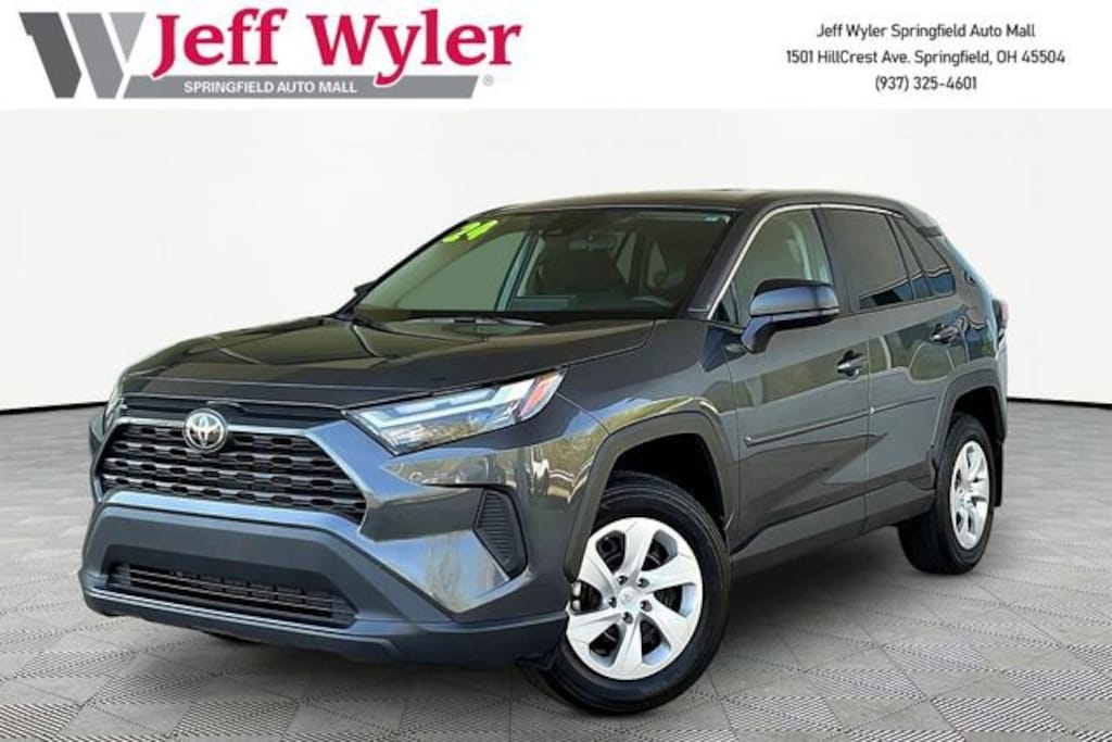 Jeff Wyler Springfield Auto Mall is proud to offer this good-looking 2024 Toyota RAV4 LE in Magnetic Gray Metallic. Well equipped with: 17 Steel Wheels, 4-Wheel Disc Brakes, 6 Speakers, ABS brakes, Air Conditioning, AM/FM radio: SiriusXM, Auto High-beam Headlights, Axle Ratio: 3.177, Brake assist, Bumpers: body-color, Driver door bin, Driver vanity mirror, Dual front impact airbags, Dual front side impact airbags, Electronic Stability Control, Emergency communication system: Safety Connect (10-year trial), Exterior Parking Camera Rear, Fabric Seat Trim, Four wheel independent suspension, Front anti-roll bar, Front Bucket Seats, Front Center Armrest, Front reading lights, Illuminated entry, Knee airbag, Low tire pressure warning, Occupant sensing airbag, Outside temperature display, Overhead airbag, Overhead console, Panic alarm, Passenger door bin, Passenger vanity mirror, Power door mirrors, Power steering, Power windows, Radio data system, Radio: AM/FM/XM Audio System, Rear anti-roll bar, Rear seat center armrest, Rear window defroster, Rear window wiper, Remote keyless entry, Speed control, Speed-sensing steering, Split folding rear seat, Spoiler, Steering wheel mounted audio controls, Tachometer, Telescoping steering wheel, Tilt steering wheel, Traction control, and Trip computer. Ask about available certifications. Used vehicles 10 years of age or newer with less than 100,000 miles are eligible for the Wyler Assurance Program, but eligible vehicles must pass our reconditioning process and multi-point inspection. Provided the vehicle passes inspection, vehicles will be eligible for the 6 month/6,000 mile limited warranty. The 6 month/6,000 mile limited warranty is NOT available on AS-IS vehicles, wholesale vehicles, lease buyback/pass-thru vehicles or un-inspected vehicles. Note that this program can also apply to vehicles where the remaining factory coverage is less than 6 months or 6,000 miles. Please check the Federal Trade Commission (FTC) Buyers guide on the vehicle for full details as to whether or not warranty coverage may apply. Contact Dealer for additional details. The Wyler Assurance 6 month/6,000 Mile limited warranty ends 6 months from the date of the Retail Purchase Agreement (BUYERS ORDER) or when the vehicle's odometer registers 6,000 additional miles to the mileage listed on the BUYERS ORDER, whichever comes first. Your Deductible - The warranty holder on your contract pays the first $100 of each covered repair.