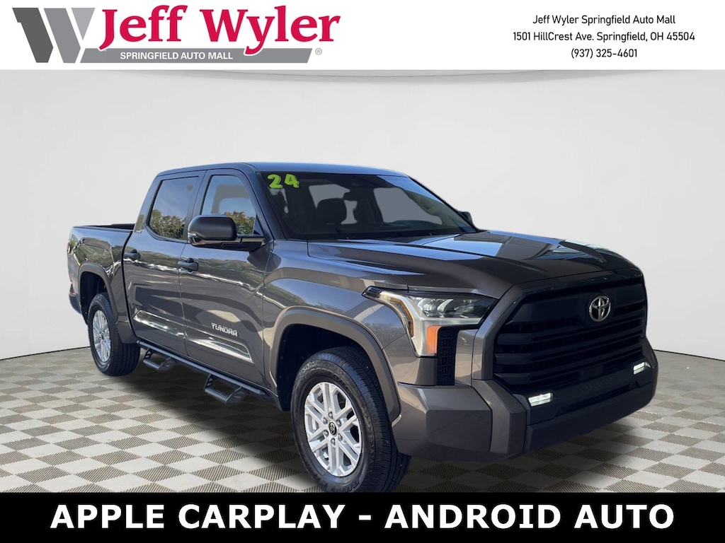 Jeff Wyler Springfield Auto Mall is pleased to offer this great 2024 Toyota Tundra SR5 in Magnetic Gray Metallic. Well equipped with: SR5 Convenience Package (32 Gallon Fuel Tank, Blind Spot Monitor w/Lane Change Assist, and Parking Support Alert/Brake), 18" Alloy Wheels, 3.31 Axle Ratio, 4-Way Adjustable Front Bucket Seats, 4-Wheel Disc Brakes, 9 Speakers, ABS brakes, Air Conditioning, Alloy wheels, AM/FM radio: SiriusXM, Apple CarPlay/Android Auto, Auto High-beam Headlights, Automatic temperature control, Brake assist, Bumpers: body-color, Delay-off headlights, Driver door bin, Driver vanity mirror, Dual front impact airbags, Dual front side impact airbags, Electronic Stability Control, Emergency communication system: Safety Connect (10-year trial), Exterior Parking Camera Rear, Fabric Seat Trim (FB), Front anti-roll bar, Front Bucket Seats, Front Center Armrest, Front fog lights, Front reading lights, Front wheel independent suspension, Fully automatic headlights, Heated door mirrors, Illuminated entry, Knee airbag, Low tire pressure warning, Occupant sensing airbag, Outside temperature display, Overhead airbag, Overhead console, Panic alarm, Passenger door bin, Passenger vanity mirror, Power door mirrors, Power steering, Power windows, Radio data system, Radio: Audio Multimedia System, Rear reading lights, Rear step bumper, Rear window defroster, Remote keyless entry, Safety Connect, Security system, Speed control, Speed-sensing steering, Split folding rear seat, Steering wheel mounted audio controls, Tachometer, Telescoping steering wheel, Tilt steering wheel, Traction control, Trip computer, Variably intermittent wipers, and Voltmeter. Ask about available certifications. Used vehicles 10 years of age or newer with less than 100,000 miles are eligible for the Wyler Assurance Program, but eligible vehicles must pass our reconditioning process and multi-point inspection. Provided the vehicle passes inspection, vehicles will be eligible for the 6 month/6,000 mile limited warranty. The 6 month/6,000 mile limited warranty is NOT available on AS-IS vehicles, wholesale vehicles, lease buyback/pass-thru vehicles or un-inspected vehicles. Note that this program can also apply to vehicles where the remaining factory coverage is less than 6 months or 6,000 miles. Please check the Federal Trade Commission (FTC) Buyers guide on the vehicle for full details as to whether or not warranty coverage may apply. Contact Dealer for additional details. The Wyler Assurance 6 month/6,000 Mile limited warranty ends 6 months from the date of the Retail Purchase Agreement (BUYERS ORDER) or when the vehicle's odometer registers 6,000 additional miles to the mileage listed on the BUYERS ORDER, whichever comes first. Your Deductible - The warranty holder on your contract pays the first $100 of each covered repair.